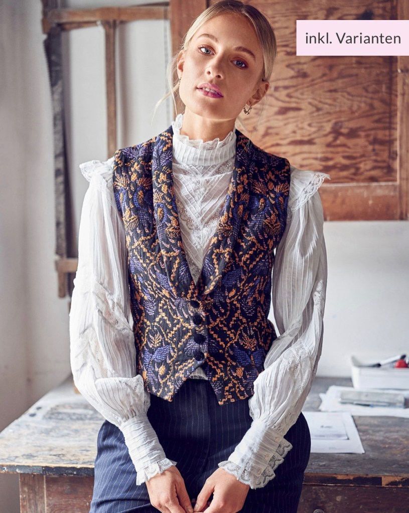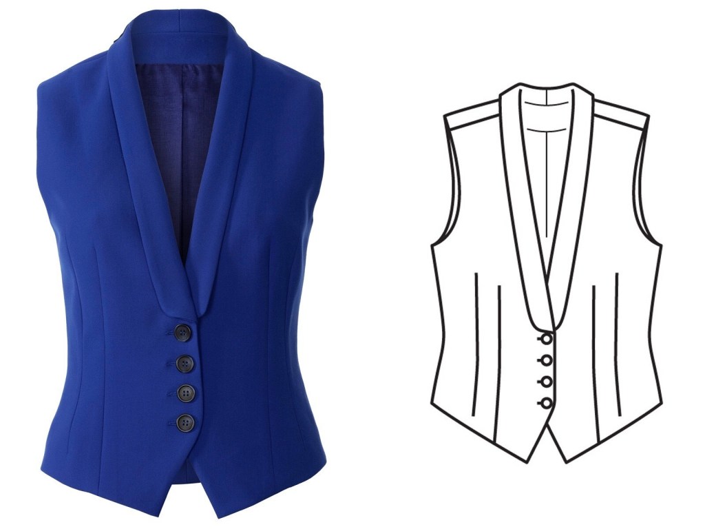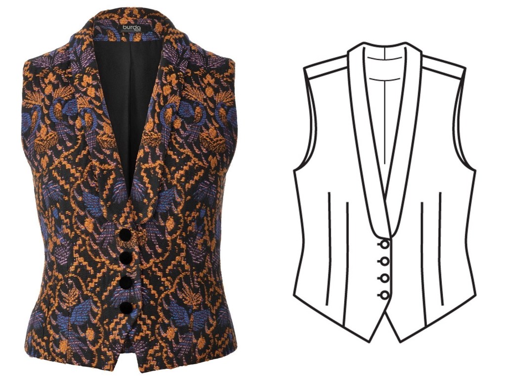 The super chic vest! Burda doesn’t often give us vests, but I have to admit they’ve really convinced me that they could be a fun wardrobe item with this issue. I think this vest has a lot of fantastic details, and that the end result is surprisingly versatile and really smart looking.
