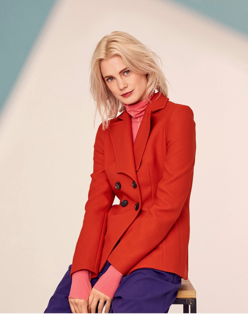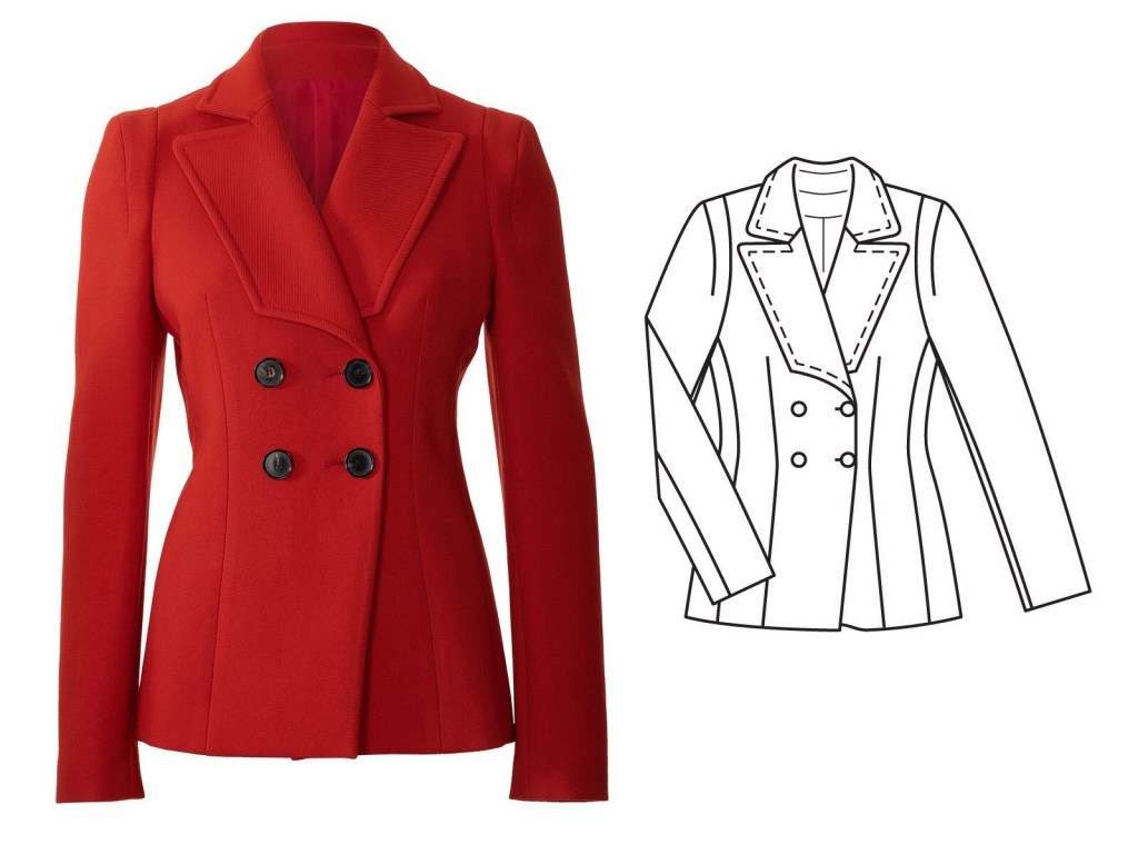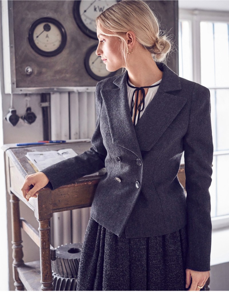 Love this! The interestingly geometric lapel is apparently a major trend this season and I’m here for it. I really love all the seam lines in the jacket, and the extra seam that creates that really strong shoulder is an interesting feature.