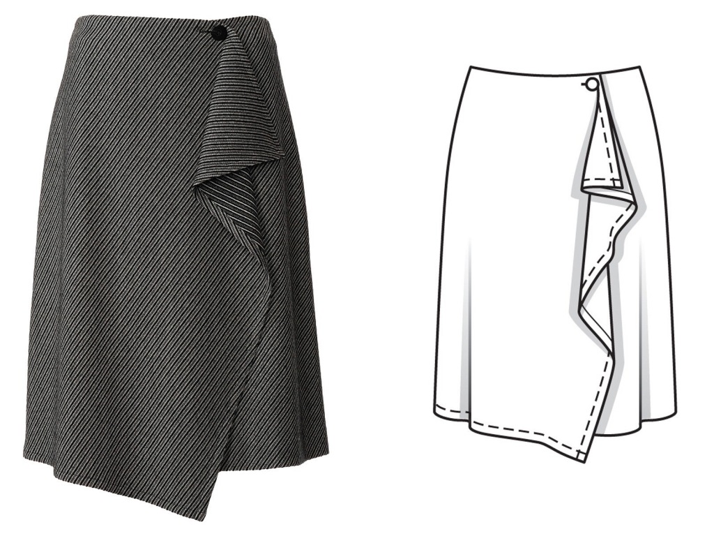 This is one pattern that looks way more interesting on the model than it does in the line drawing. The drape of the side panel is actually really interesting in this checked print, and I think this skirt would look great worn with many of the tops Burda has given us in recent issues.