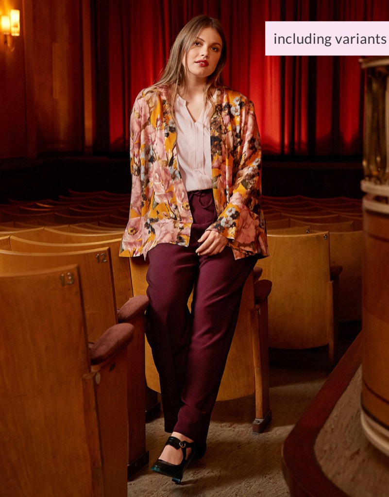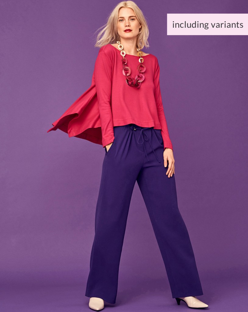 The drawstring trousers are about the same as the pattern for the smaller size range – not overly exciting, but definitely very functional. I think they look pretty fabulous on the model!