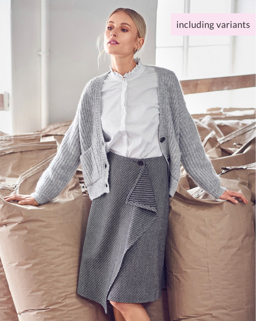 Love this! The neckline treatment is so cute! And I really like the angled hemlines. I also think the styling is very smart – it’s ready for work, but also a casual fall day.