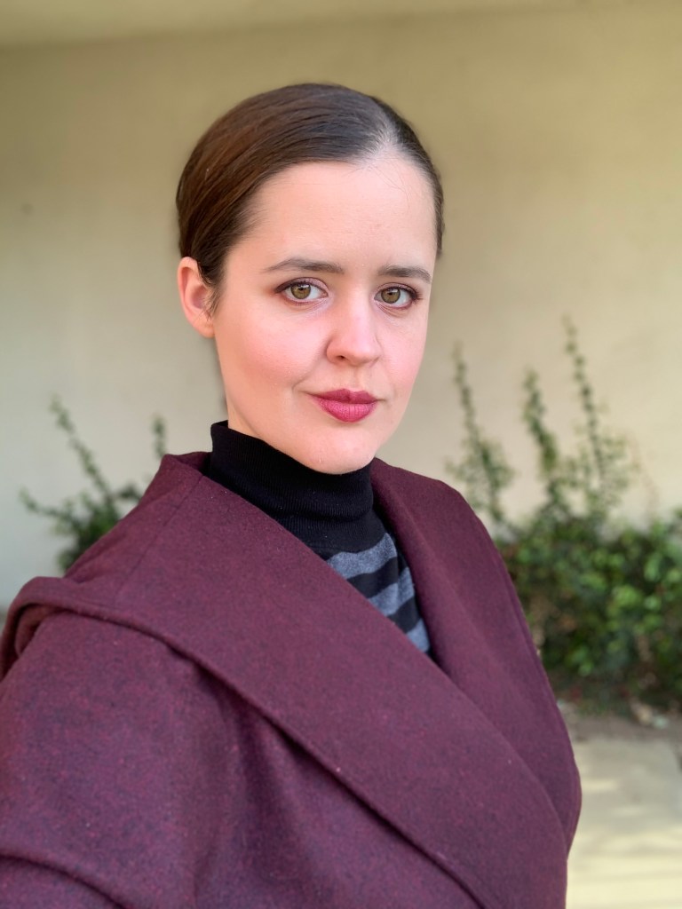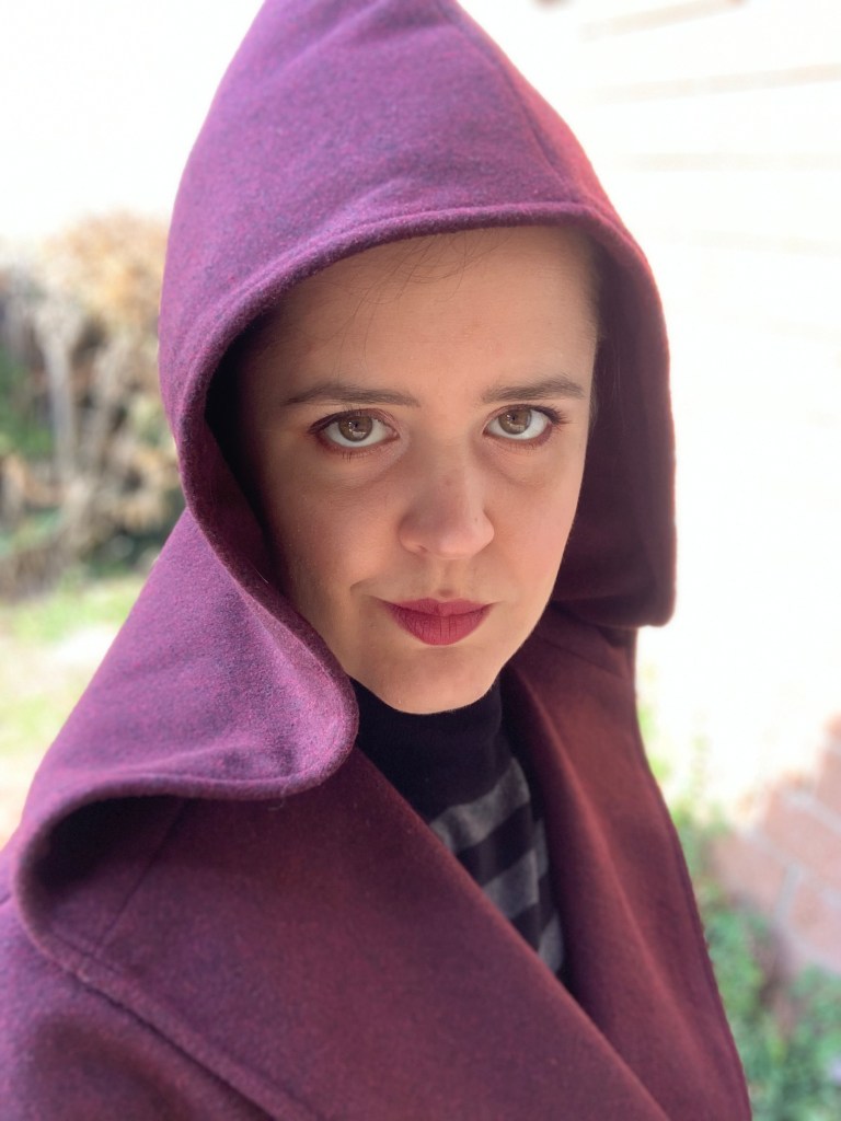 5. I really like your cape! Looks very elegant and drapy chic – so it might be best suited for soft dramatics, as you said. But I definitely think you can pull it of as well. I’d second the recommendation for a slimmer leg (skinny or at least straight), maybe even heels like in the model photo, to give you more vertical line. I’m not getting any Jawa vibes from you 😀 although for the Jedi chic a beige or mid grey seems more intuitive. Anyway, you look great!