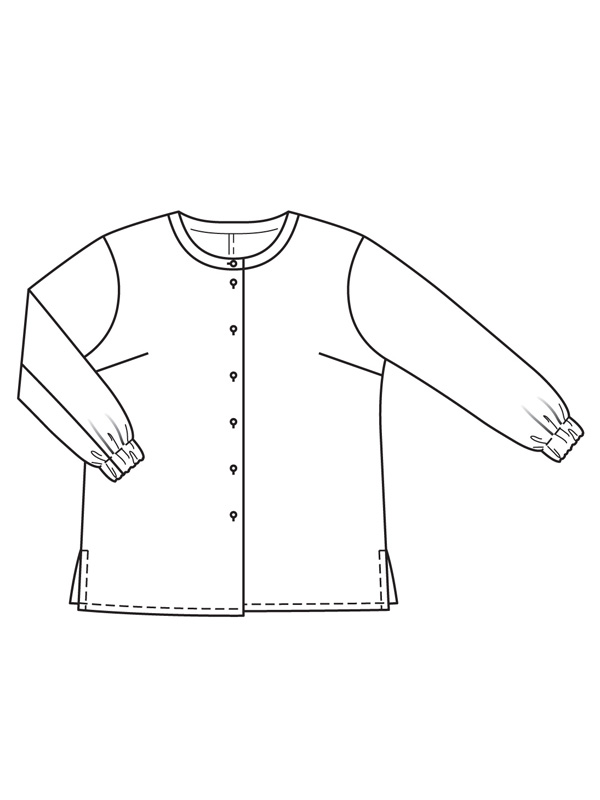 103 – I’m really not sure what’s up with the weird square on the Burda top photo… Anyway, I think the textured collar detail is kind of nice here. I also think this top looks really great on the model – it’s a nice length for tucking-in or for leaving open as well.