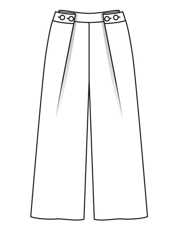 105 – I really like the waistline detail on these pleated culottes. The buttons are cute! I also think this would be a really easy pattern to extend into a full-length trouser as well, so that the waistline detail could be utilized on a more “work appropriate” trouser.