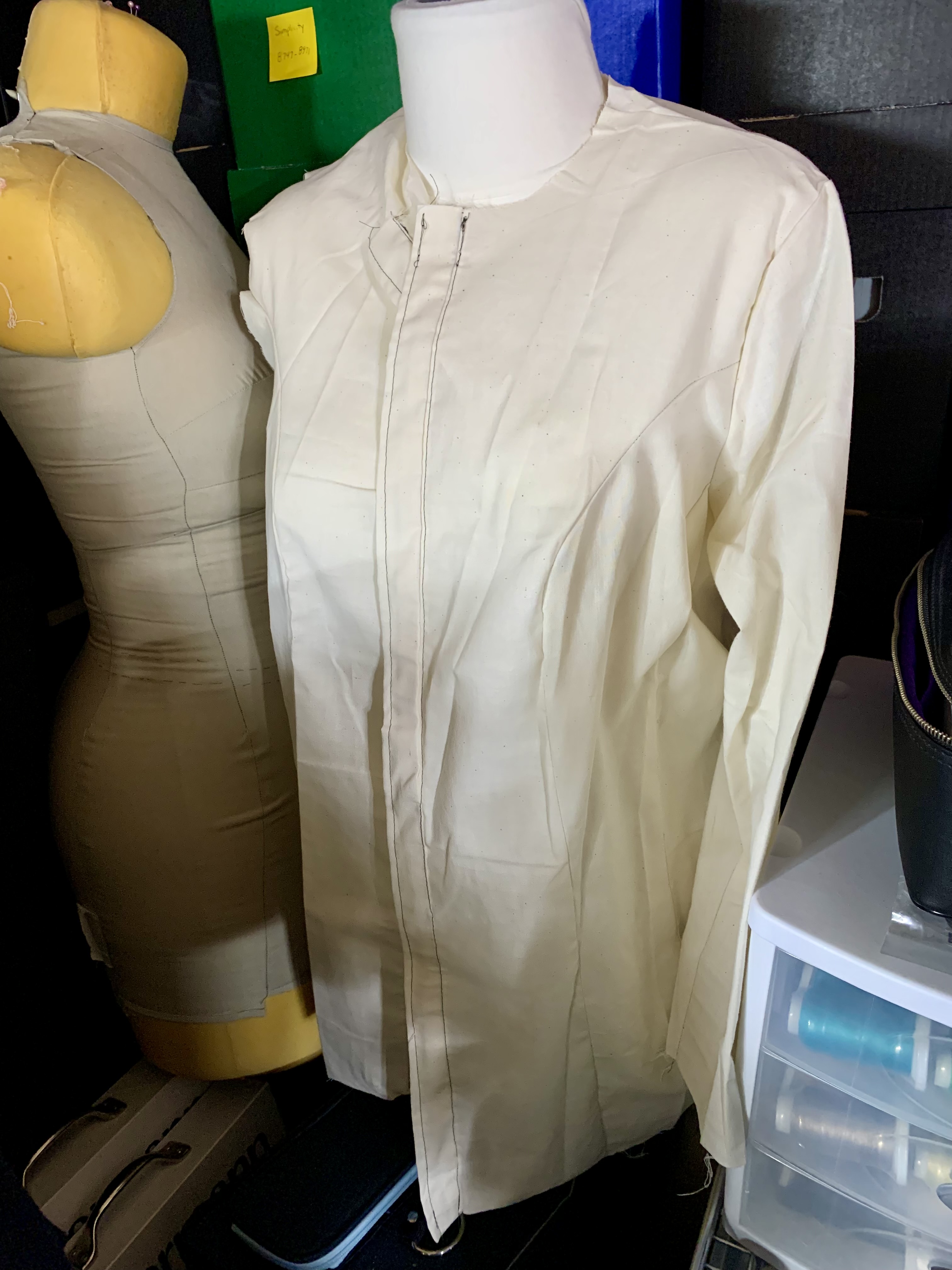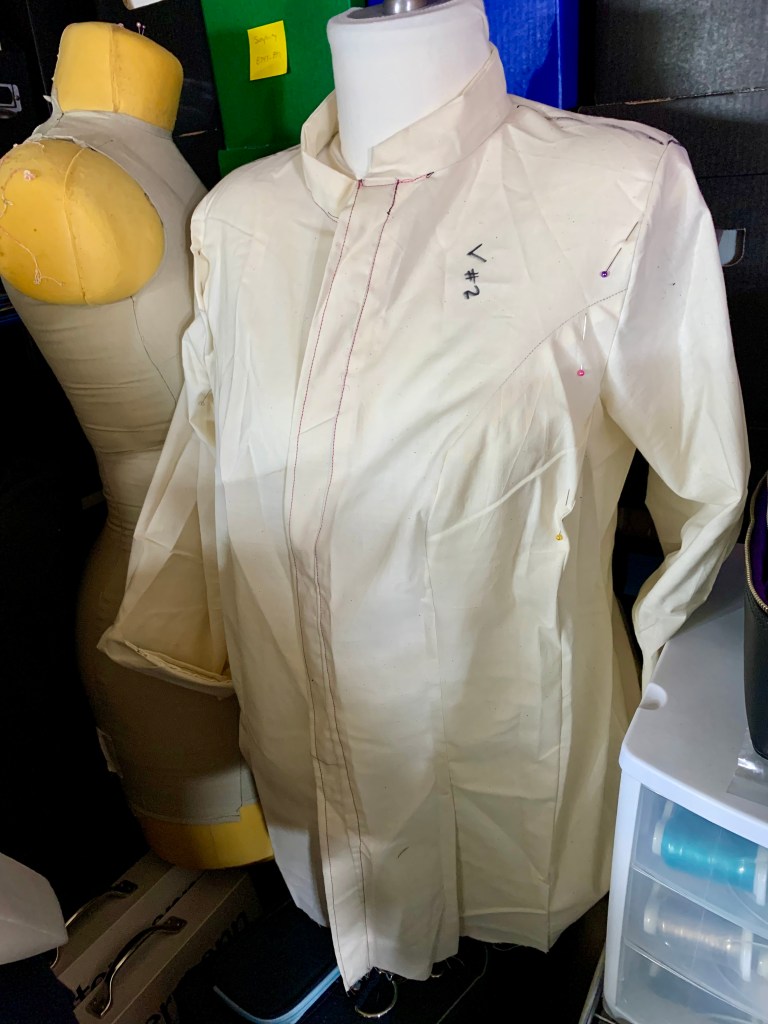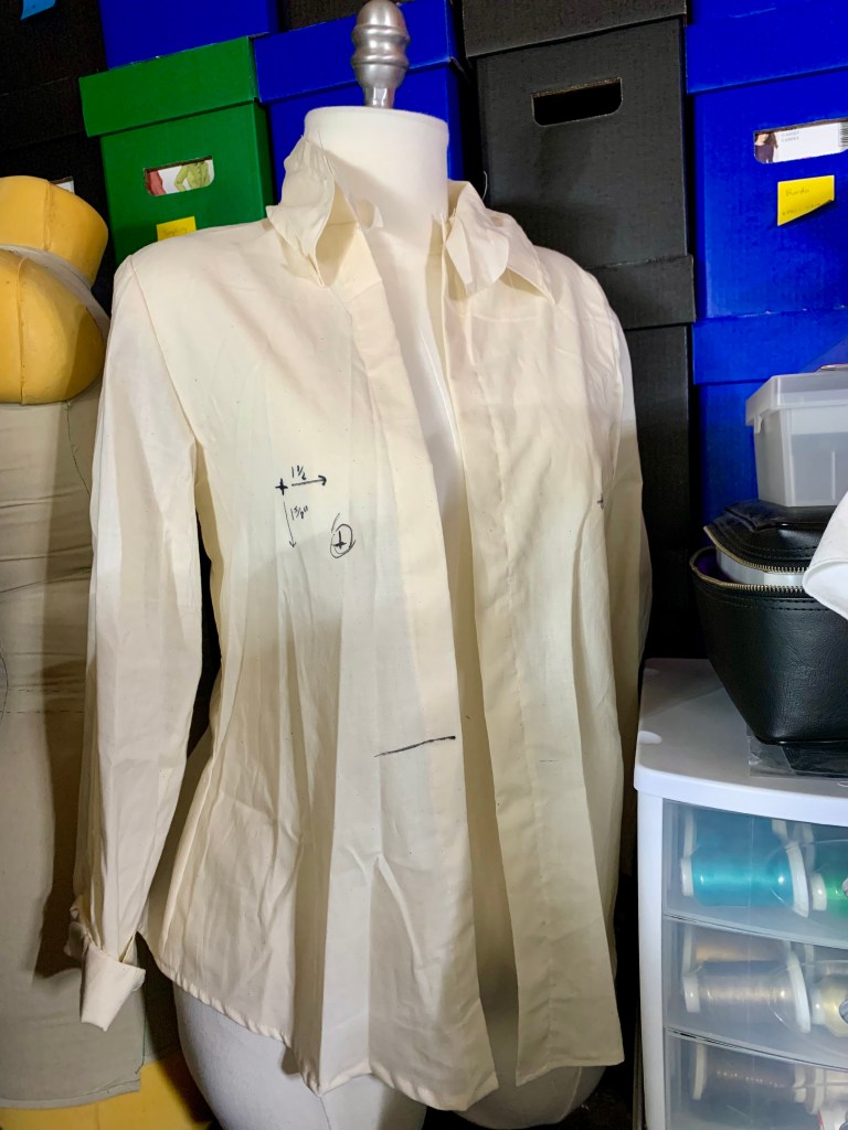 I started with attempting to fit Butterick 5525; it’s a pattern I’ve wanted to sew for a long time. Unfortunately, the first size I picked (size 14) was way too small. I knew I’d need an FBA and did one preemptively, but I couldn’t even get the collar to close around my neck, so clearly it was not even close to a good starting point. I then over-estimated the size I’d need and went with a 20; this was massively large, but not in a “cute and intentionally oversized” way. It was much more of a “it doesn’t fit well and looks sort of like a potato sack” kind of way. I suppose as an upside, I did get to practice some shirt-making techniques and explore the shirt collar and cuff placket making process before we get to any of the real fabric.