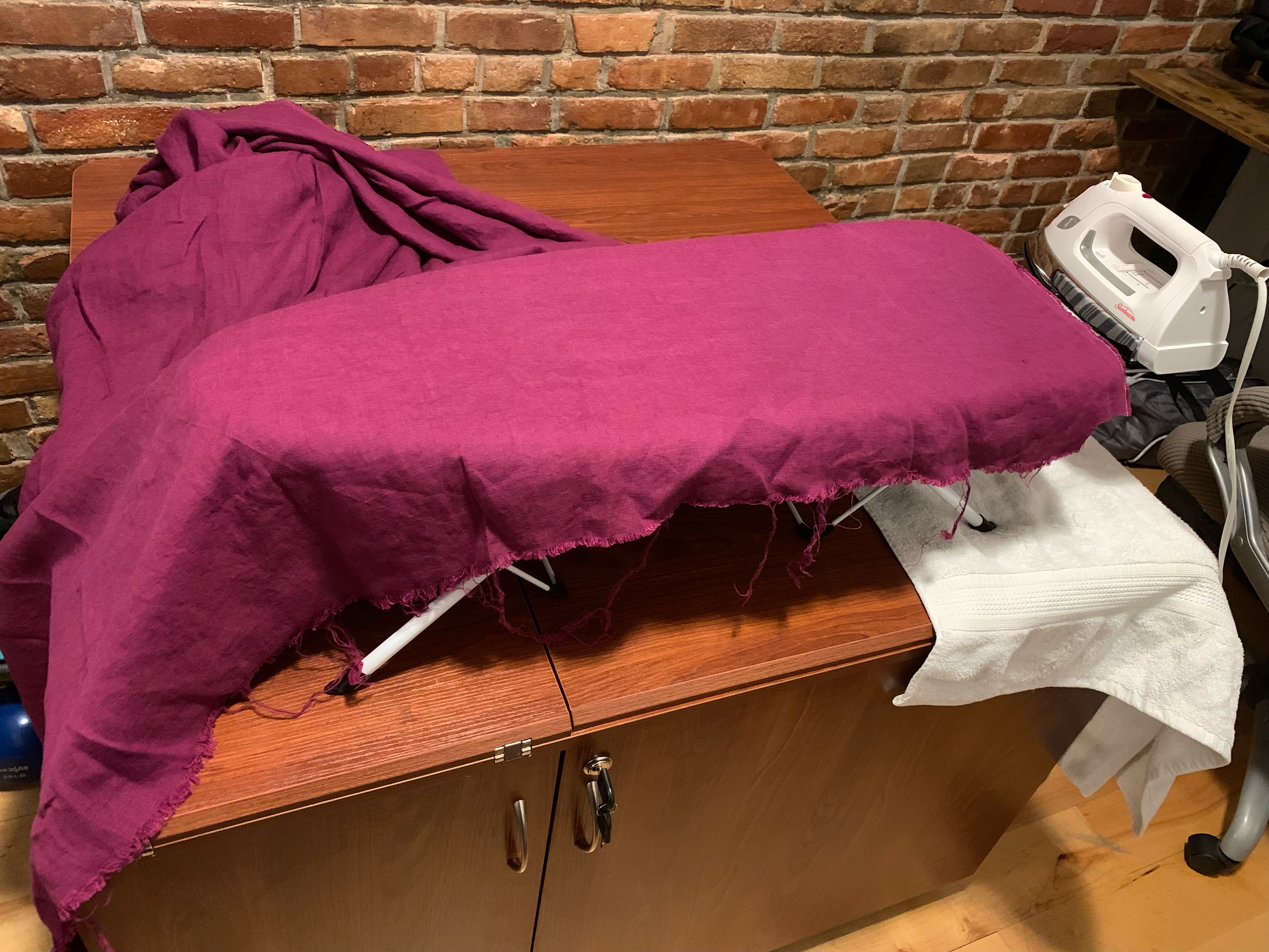 It looks like your sister has an enviable setup, not to mention a gorgeous piece of magenta linen – wow!