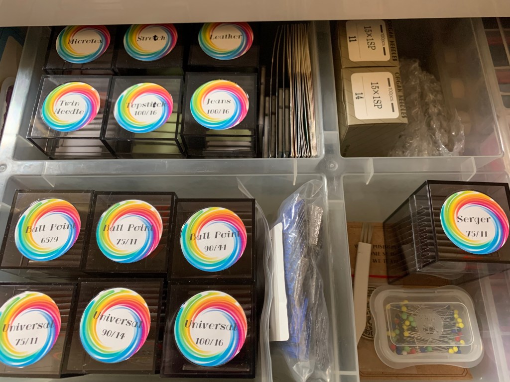 In sewing room news – my needle box label stickers (made on my Cricut) have been applied! I think I’m going to like them a lot – already my drawer feels a lot more organized: