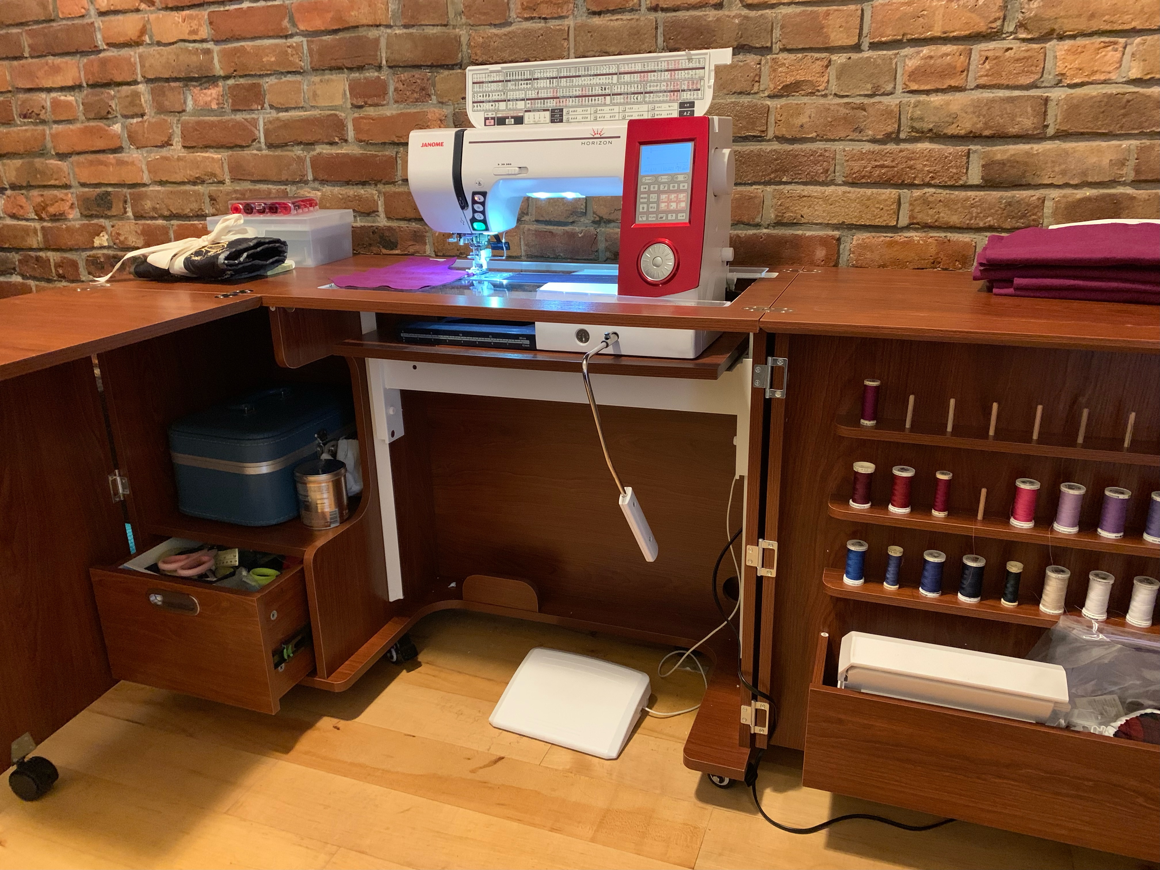 She has just barely started a sewing project, so I don’t have a solid report of how the sewing machine in use in the cabinet if going yet, but the versatility of also having it as a pressing station is definitely a perk of an all-in-one sewing station if you need space savings! She said the building process what challenging and she wouldn’t want to have to build it again, but also that the customer service was really helpful when she got stuck on a few things. So overall it has been a good investment so far.