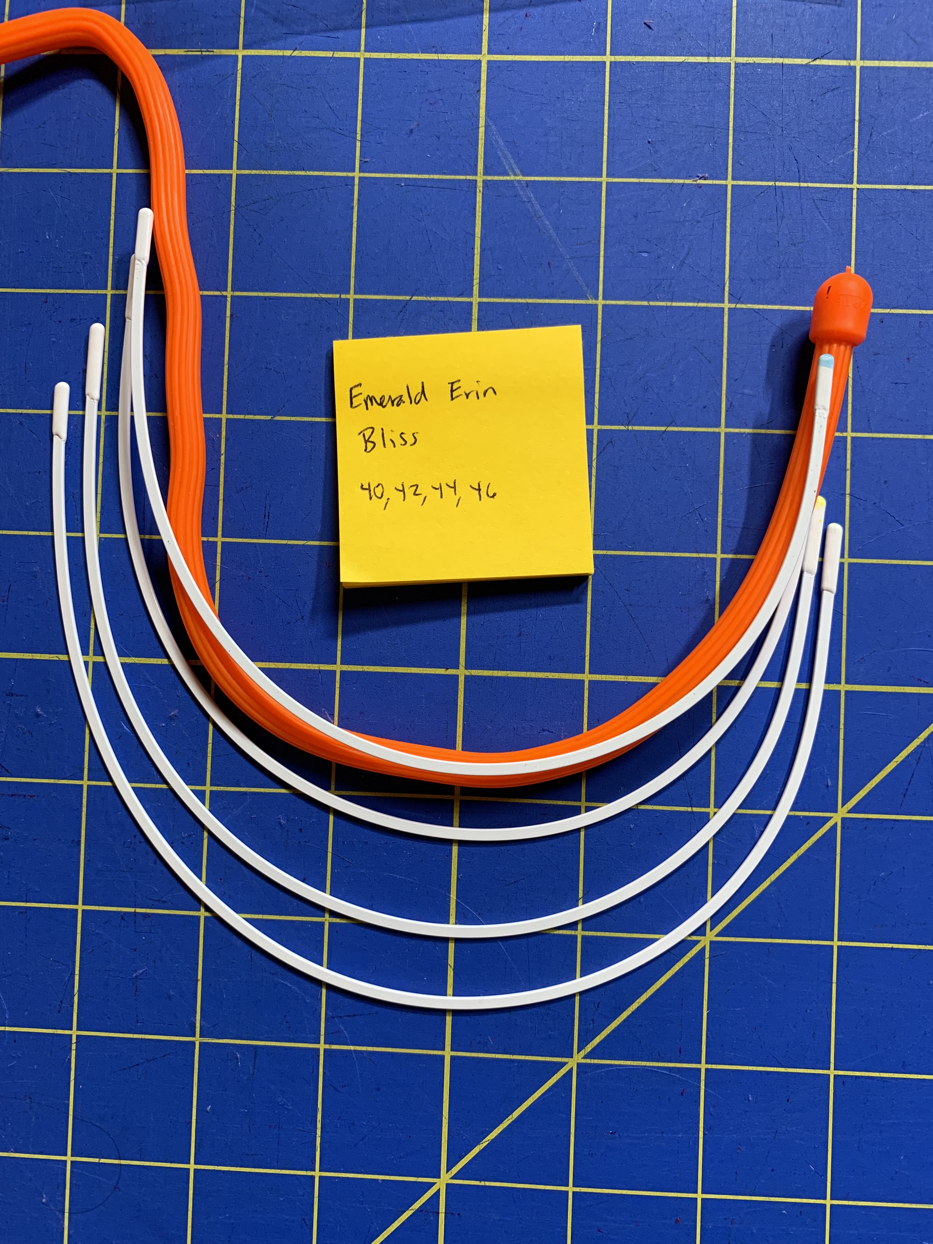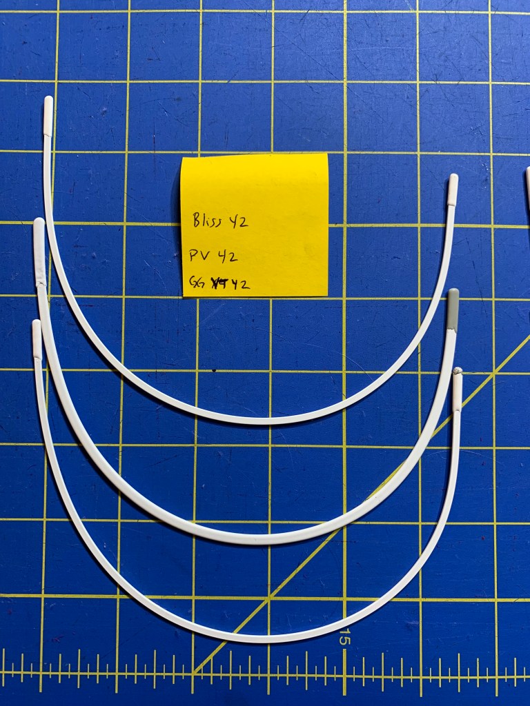 I have finished sewing both the Bravo Bra #2 and the Cashmerette Willowdale bra, except for the final addition of the underwire (review posts coming soon). Since I have both bras available to me, I can easily swap different wire styles in and out of each to compare the fit of the different styles and sizes of wires. After the Bliss arrived it was definitely the best fit I’d found thus far, but the largest size I ordered (44) still felt much too short in the wire line channeling in both the Bravo Bra and the Willowdale. So I thought I would order some additional sizes and styles to really see if I could really narrow down which wire is my wire.
