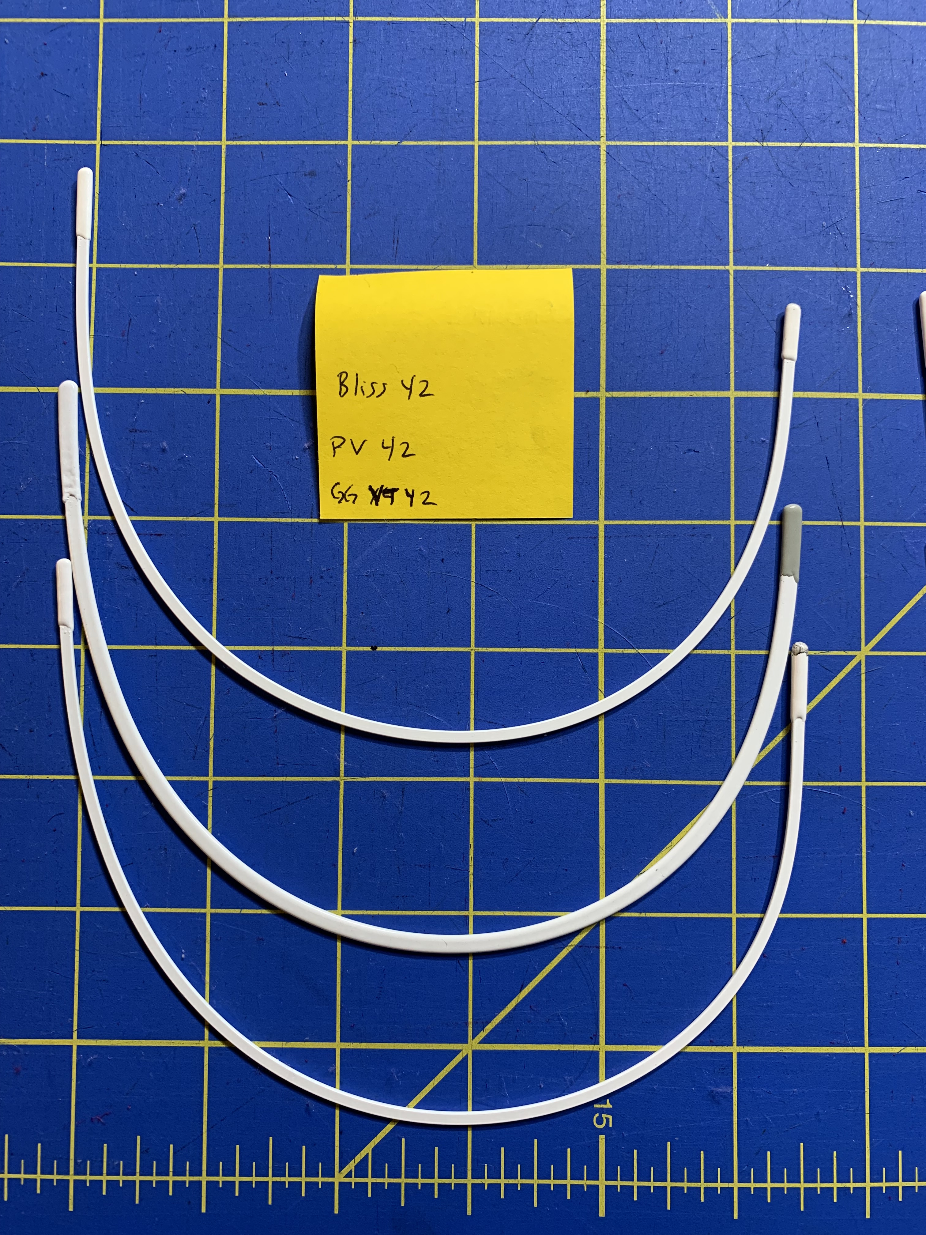 When comparing the root trace to the first wires I used on the early Ruby Bras I made, you can see the 46WL is much wider than the root trace, and even the 44 is really wide in comparison: