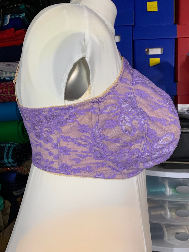 I love this fit on this bra. The band is slightly tight when I wear it for a prolonged period of time (aka, after I eat a large meal), though it may just be that I am unused to having such a close fit on a bra. I also think the Emerald Erin elastic is not quite as stretchy as the elastic I had been using from Gigi’s, so I probably was a bit overzealous in my narrowing of the back band. As far as general fit goes, I narrowed the band under the cups and moved the strap attachment more towards my center back and I like the fit much better. I also added a Gothic Arch as a front feature. I probably could have gone a bit more extreme with the angle of the “peak” but I’m super happy with how this fits and I will probably use this as a treatment on a lot of my bras moving forward.