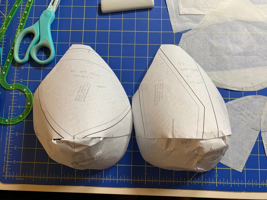 So when I last left off on my bra pattern drafting adventure, I had done a second draft using the Porcelynne Bare Essentials method but I was still having quite a few issues with the cup draft. Since then I’ve done quite a bit more exploration into the world of bra pattern drafting and I definitely have some thoughts and a much better idea of what I want to do moving forward.