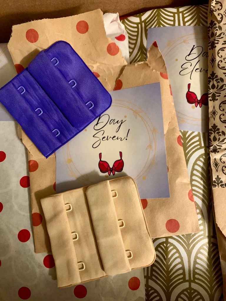 I’ve been photo documenting my packages, so for anyone who is curious, here is what I got in my Bra Builders BRAdvent Box: