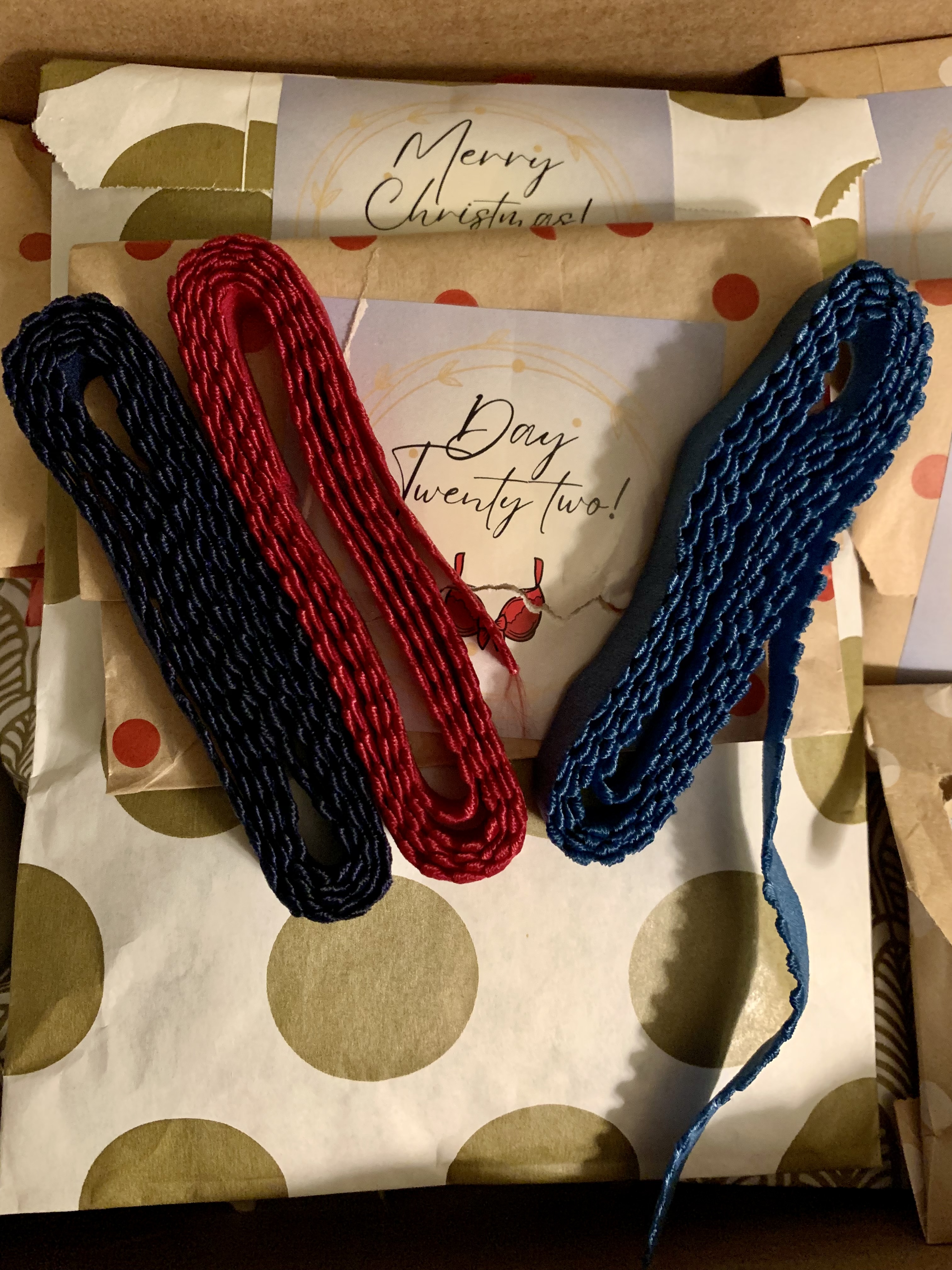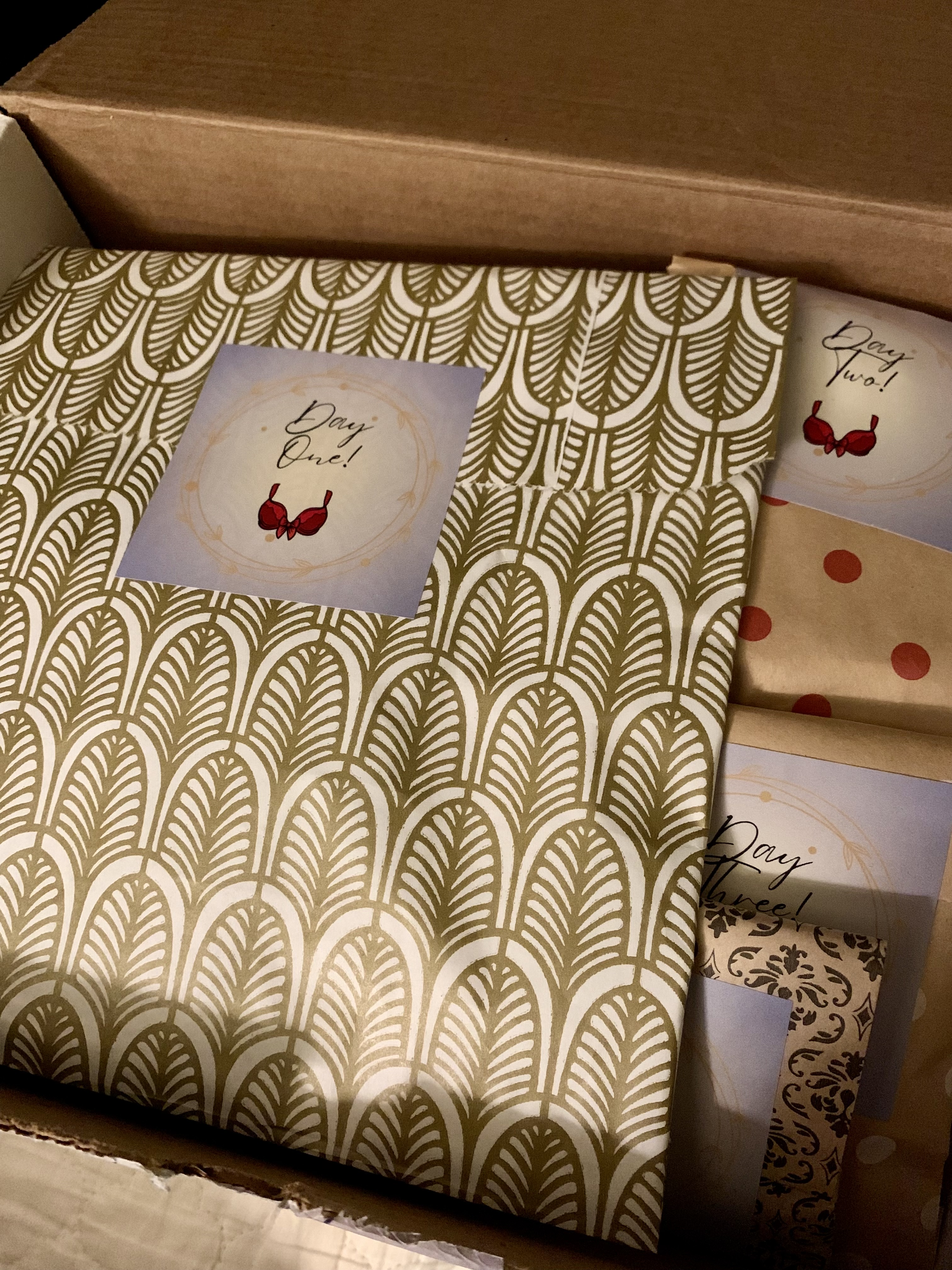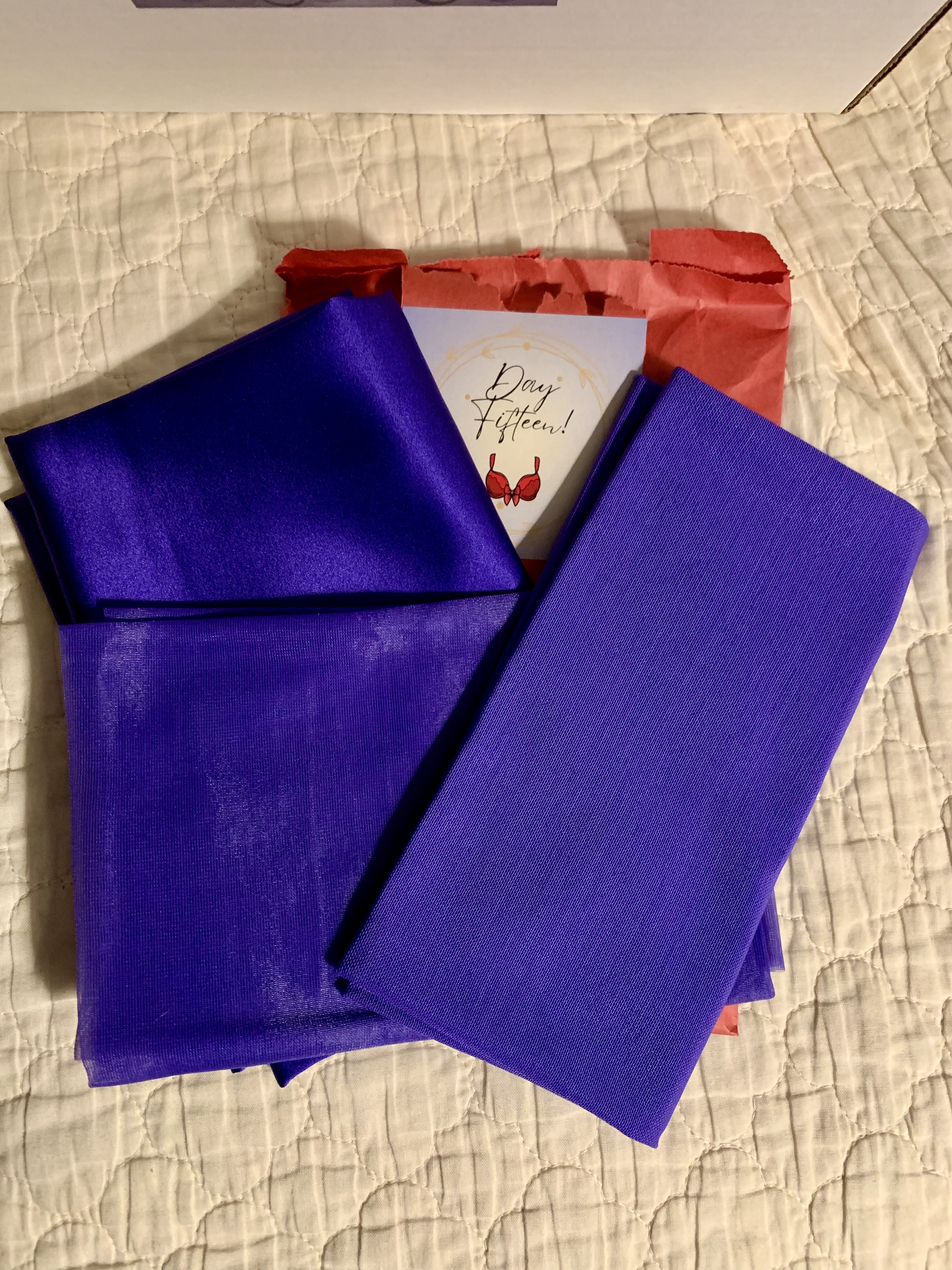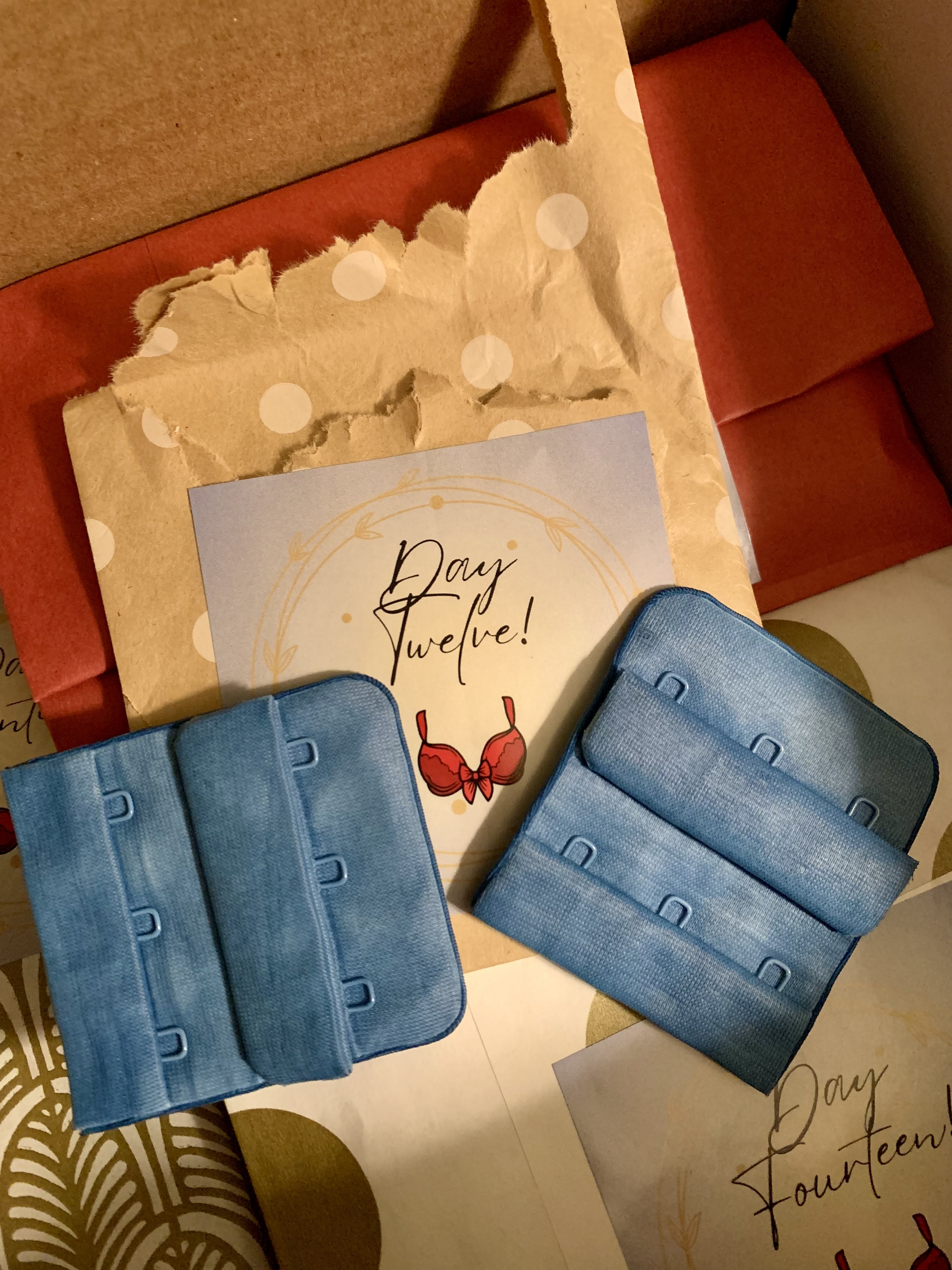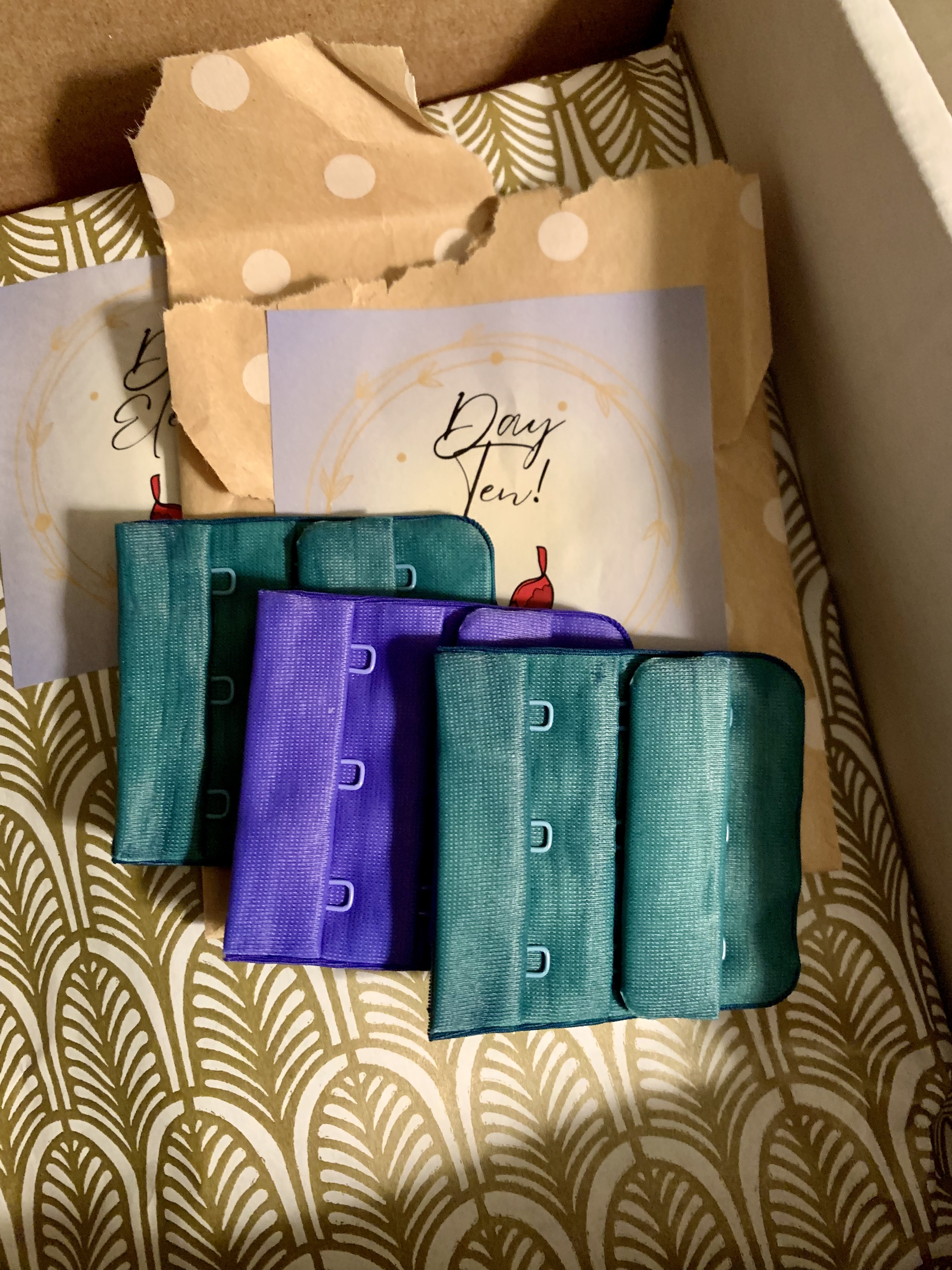 Since I’ve fallen down the bra sewing rabbit hole, I’ve started following Bra Builders to see what new supplies and kits they have on offer each month. While I was checking out the November kits, I saw that they had a BRAdvent box. I always loved doing advent calendars as a kid, and I knew I would be able to use bra supplies one way or another, so it seemed like a fun splurge for the holidays.