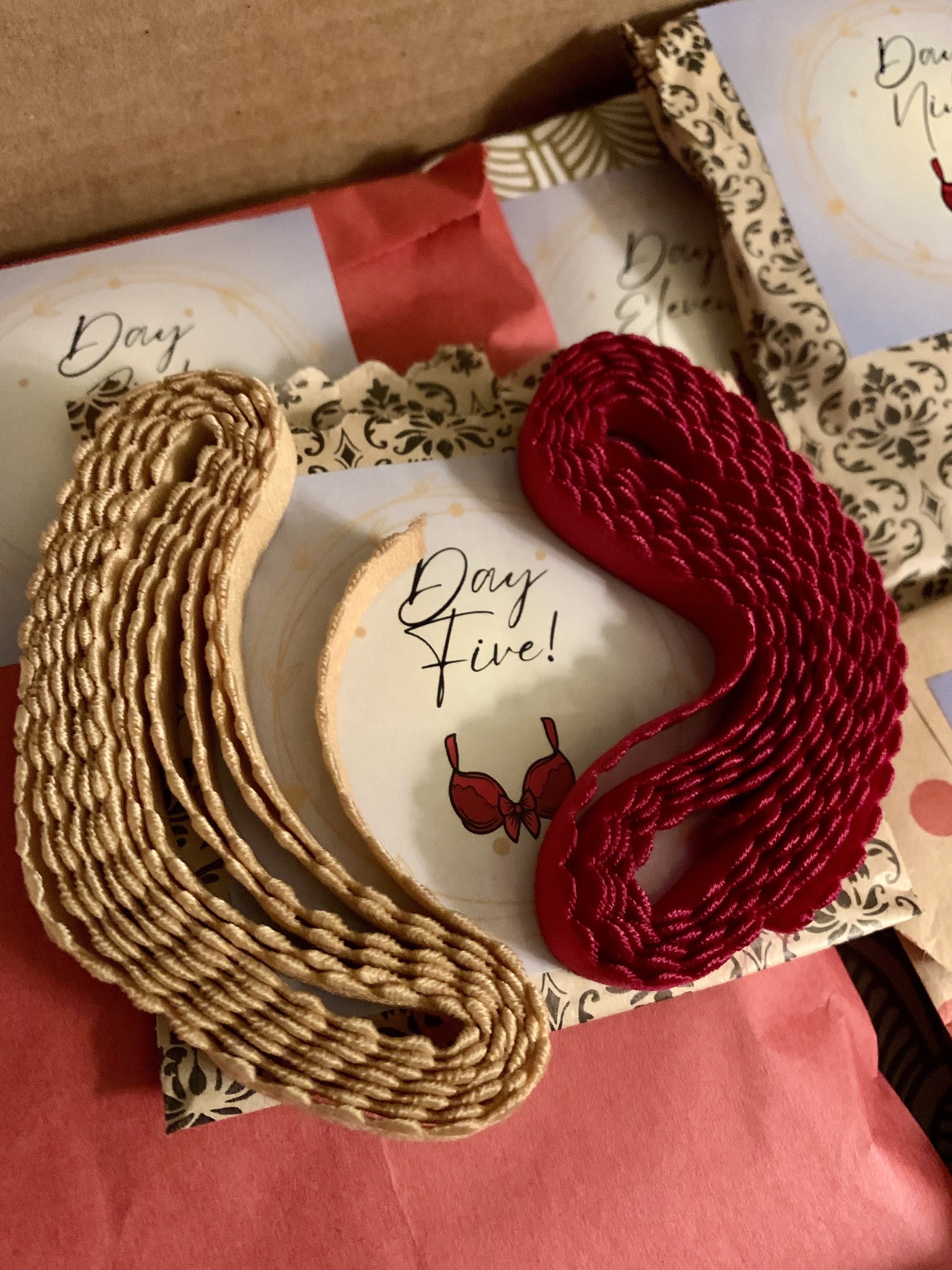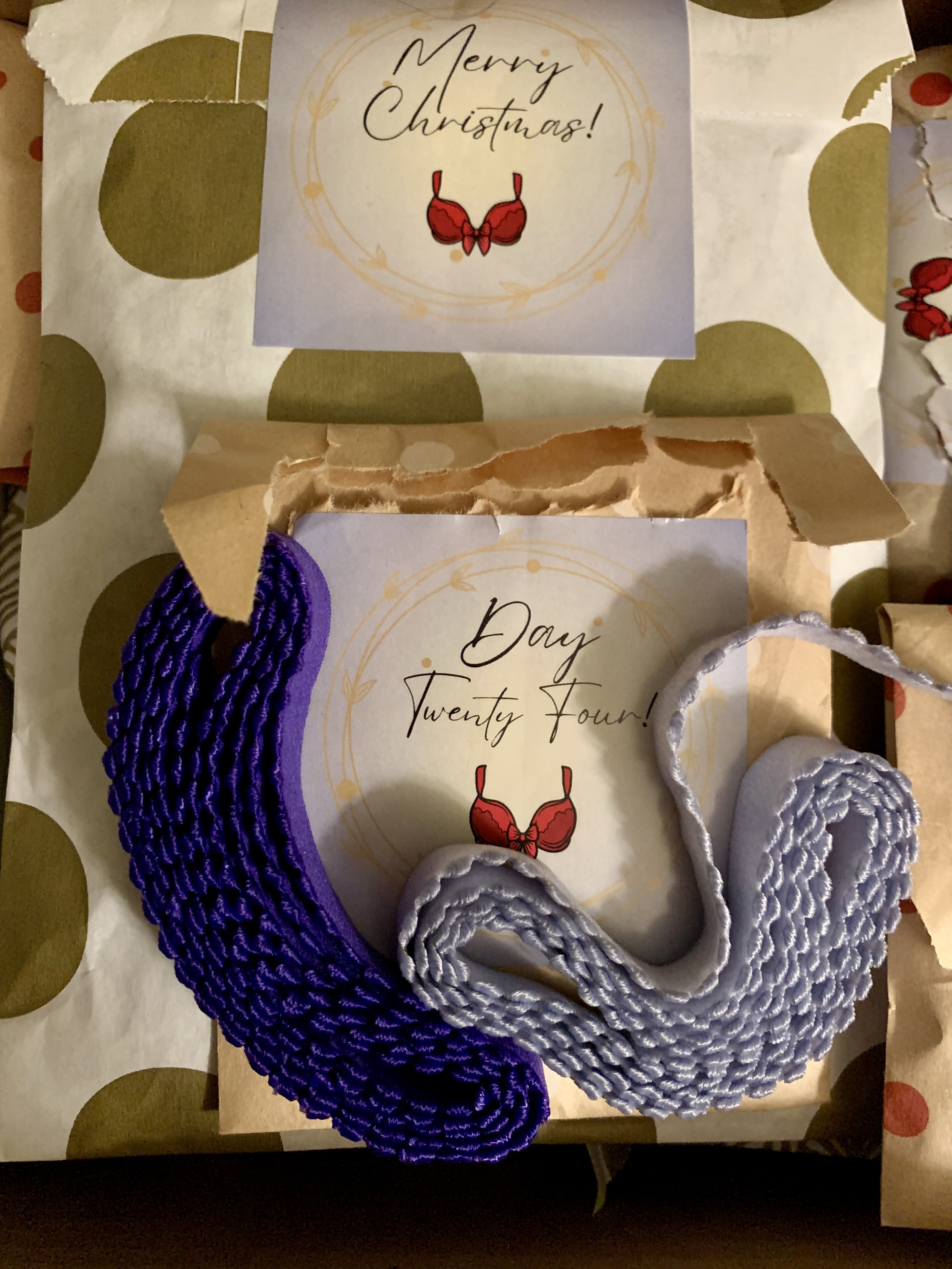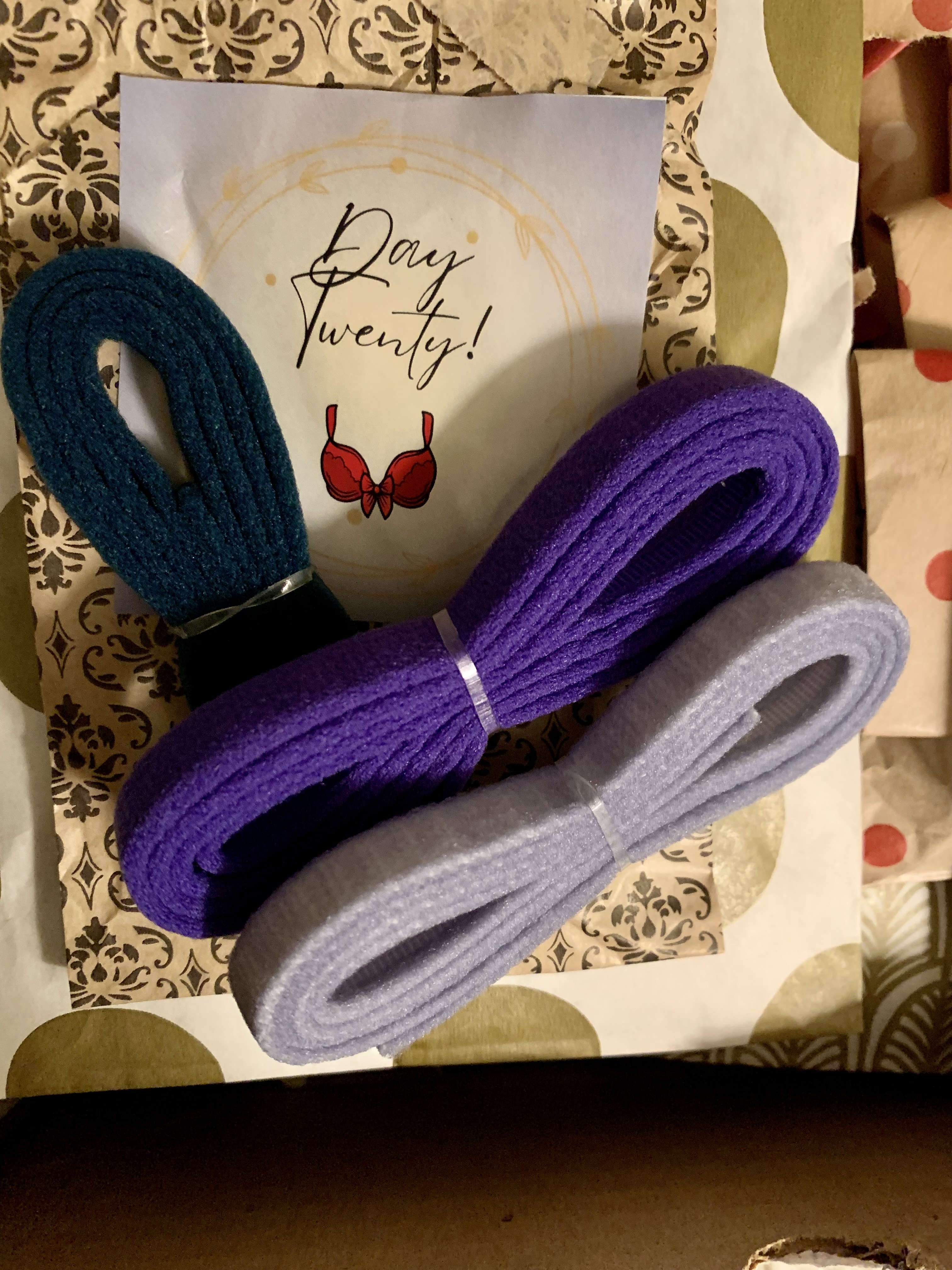 I’ve been photo documenting my packages, so for anyone who is curious, here is what I got in my Bra Builders BRAdvent Box: