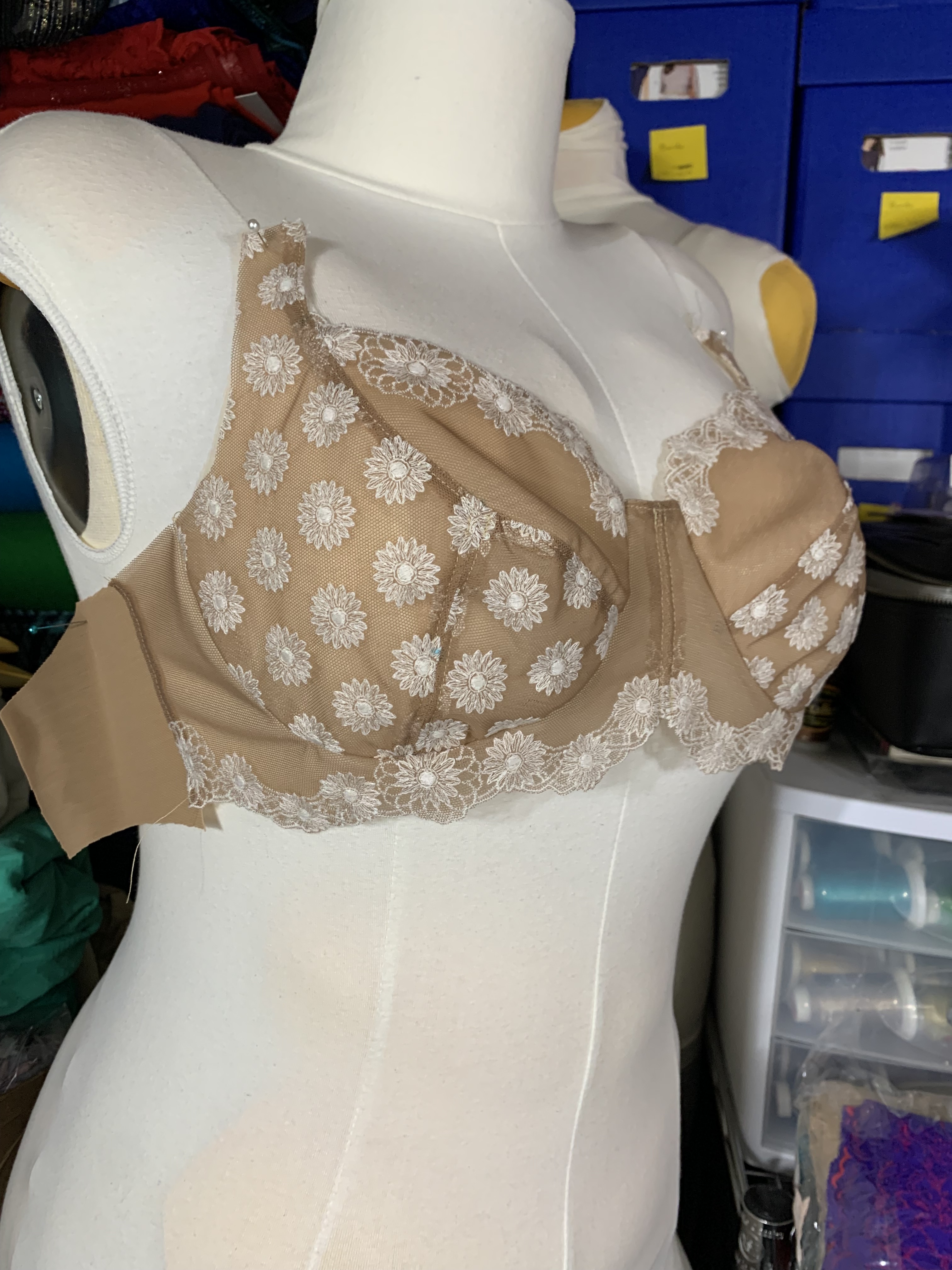 While she was here we also planned and cut into a kit she had ordered from B, Wear. We used the band I drafted for her along with the Freja cups for one bra: