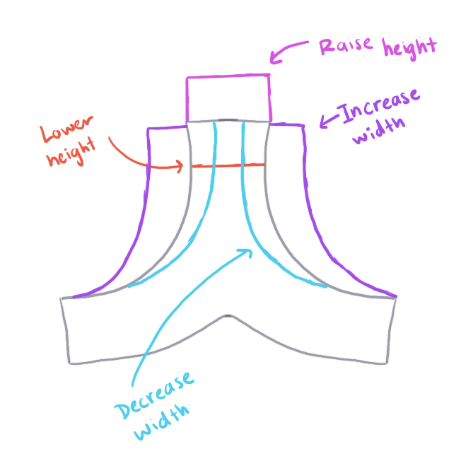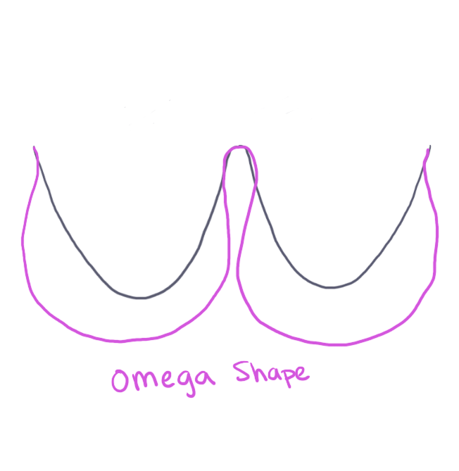 Ah, the infamous omega shape. I went on a side tangent about this issue in my first post, but basically the omega shaped breast looks like the Greek letter omega (Ω): narrow at the root and more bulbous as it extends away from the body. It is not supposed to be a common shape, but it has been hypothesized that a disproportionately large percentage of people who sew their own bras have this shape because they are fed up with how ready to wear bras (don’t) fit. The challenge of fitting this shape is that you will need a much smaller wire line on the frame when compared to the volume of the cups, resulting in a bit of guesswork and a lot of testing. To fit the omega shape it is very important to go through the process of fitting the band first, then testing out the fit of the cups. This shape of breast usually requires more fit samples and adjustments to get a working pattern. The “omega adjustment” is essentially making the cup’s seam line “darts” much larger to shrink the cup down to fit the wire line while preserving the overall cup volume. I have to do this alteration on all of my patterns, so I will go over this more in the next post.
