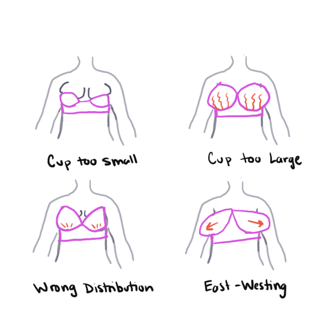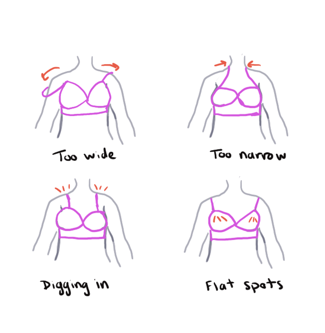 - Straps digging in. The majority of the support of a bra should come from the band, so this could actually be a sign of a band issue. However, if the band is fitting correctly and the straps are the right length, it could indicate that the cups are too small. It could also be the case that the breast tissue is extremely heavy, so using cut and sew foam in the straps to help pad them, or widening the shape of the strap could help increase comfort by reducing the pressure points.