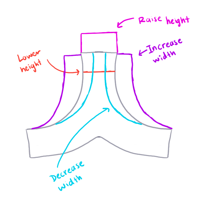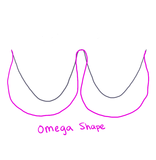 Ah, the infamous omega shape. I went on a side tangent about this issue in my first post, but basically the omega shaped breast looks like the Greek letter omega (Ω): narrow at the root and more bulbous as it extends away from the body. It is not supposed to be a common shape, but it has been hypothesized that a disproportionately large percentage of people who sew their own bras have this shape because they are fed up with how ready to wear bras (don’t) fit. The challenge of fitting this shape is that you will need a much smaller wire line on the frame when compared to the volume of the cups, resulting in a bit of guesswork and a lot of testing. To fit the omega shape it is very important to go through the process of fitting the band first, then testing out the fit of the cups. This shape of breast usually requires more fit samples and adjustments to get a working pattern. The “omega adjustment” is essentially making the cup’s seam line “darts” much larger to shrink the cup down to fit the wire line while preserving the overall cup volume. I have to do this alteration on all of my patterns, so I will go over this more in the next post.