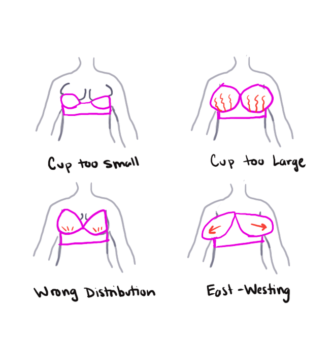 - Straps digging in. The majority of the support of a bra should come from the band, so this could actually be a sign of a band issue. However, if the band is fitting correctly and the straps are the right length, it could indicate that the cups are too small. It could also be the case that the breast tissue is extremely heavy, so using cut and sew foam in the straps to help pad them, or widening the shape of the strap could help increase comfort by reducing the pressure points.