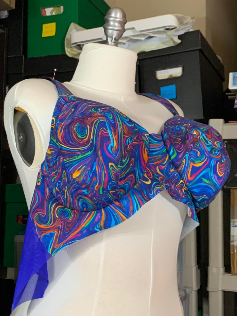 I also really wanted to participate in this month’s Hive Challenge, which was sewing a bra with cotton, patchwork, or quilting. I decided to reach into my stash of quilting cottons that I had acquired back when I was going through my pandemic mask making and maybe-I’ll be a quilter phase. I was able to pair a fun cotton print I’ve been holding on to with a lot of other materials I’ve gathered over the past year of bra sewing, and I’m pretty excited with how it came together.