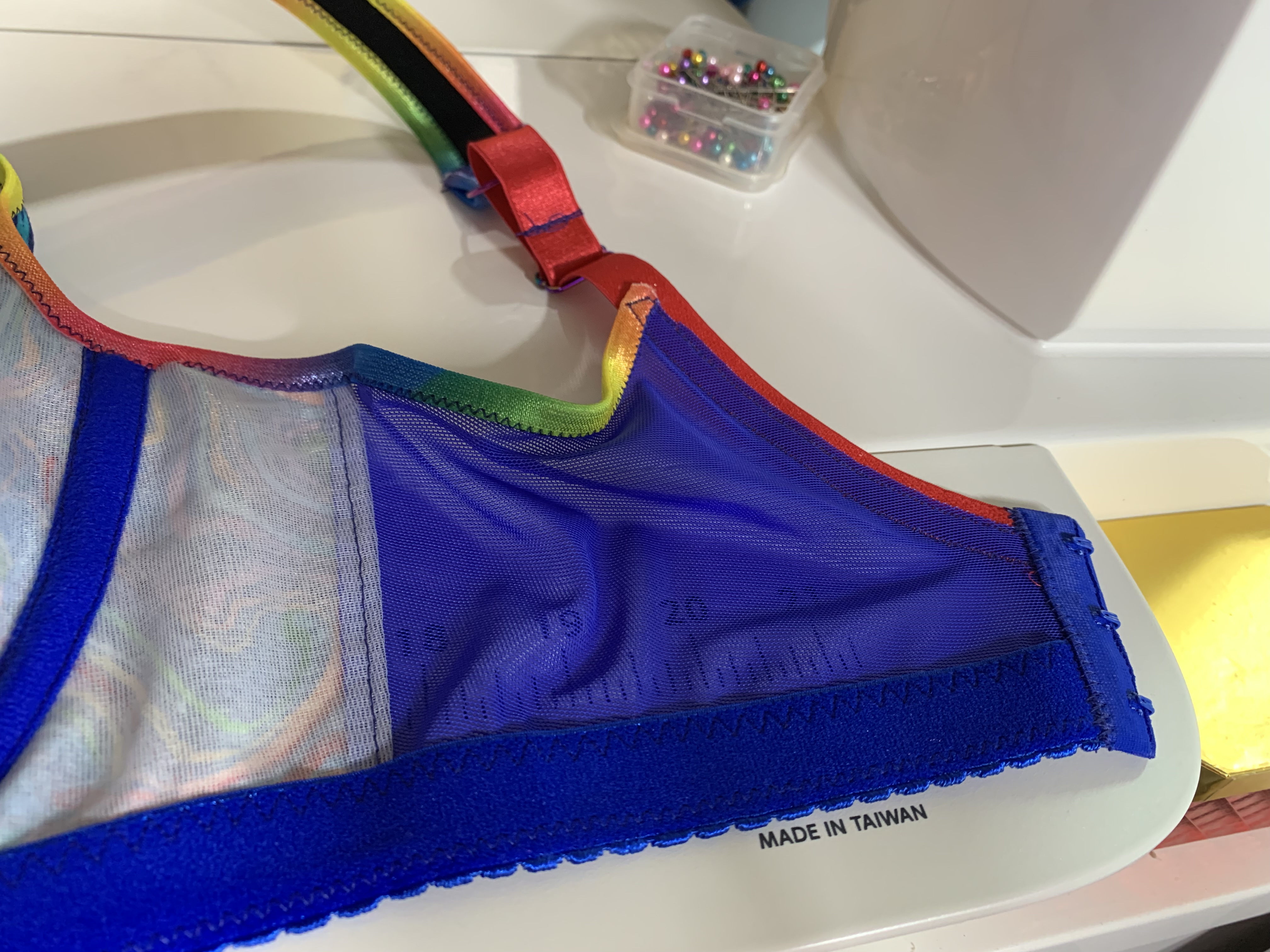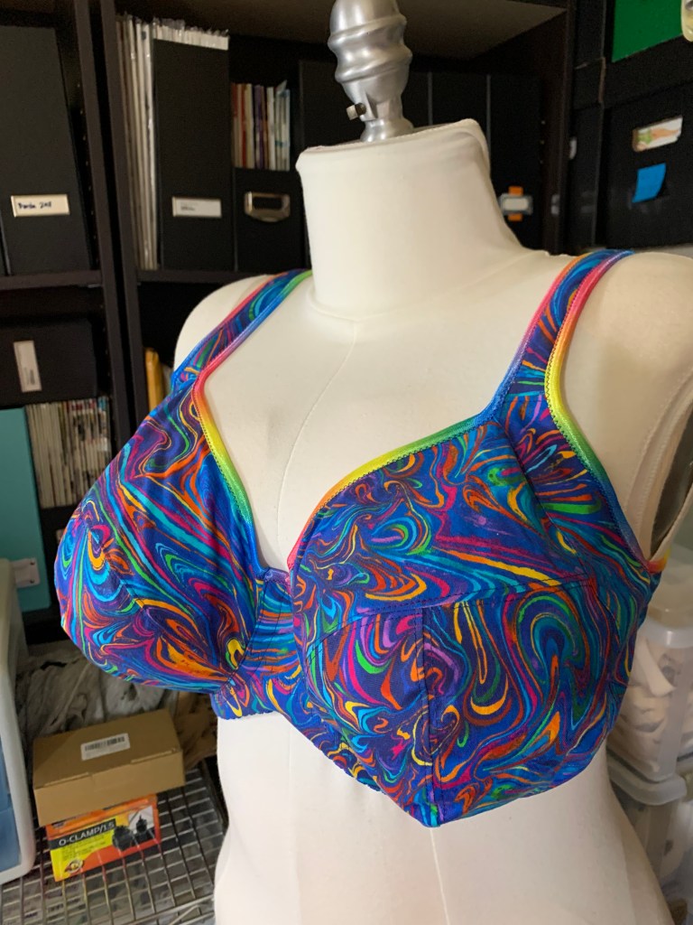 I haven’t really tried color blocking in a bra yet, but it would be fun! I have a lot of design ideas I want to play with, so maybe I will add this to the list. Right now the most colorful bra I have is from the cotton challenge in July. Not exactly color blocking, but definitely color-ful!