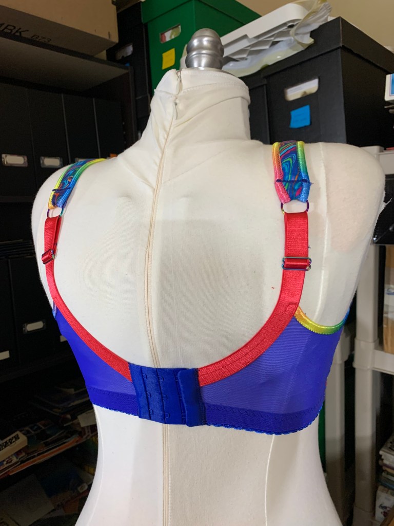 I really like the insides of bras when the channeling is a fun color, and I think they always look so good when the gothic arch technique is used for the center front elastic! I also love when the seams are fully enclosed – so tidy and satisfying.