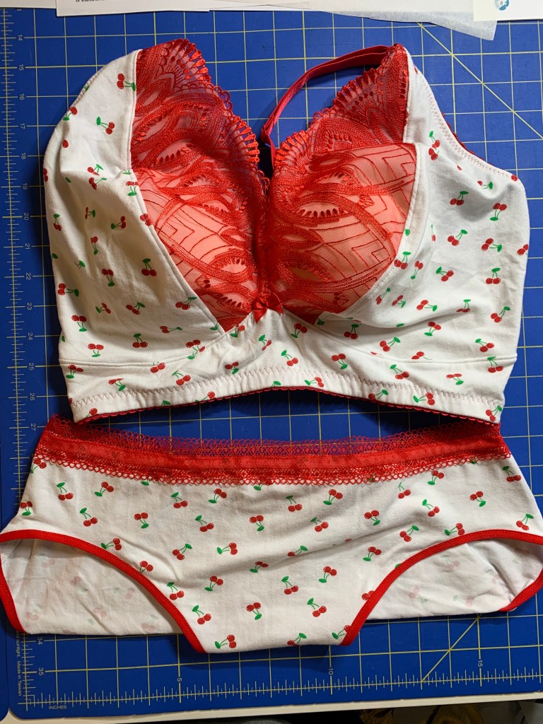 When I had previously planned wardrobe sewing, I never thought it would really extend to making collections of undergarments, but here we are. I became obsessed with this cherry fabric from Metro Textiles, and now I’ve got enough cherry undergarments to last me a lifetime. Or at least until the end of the year…