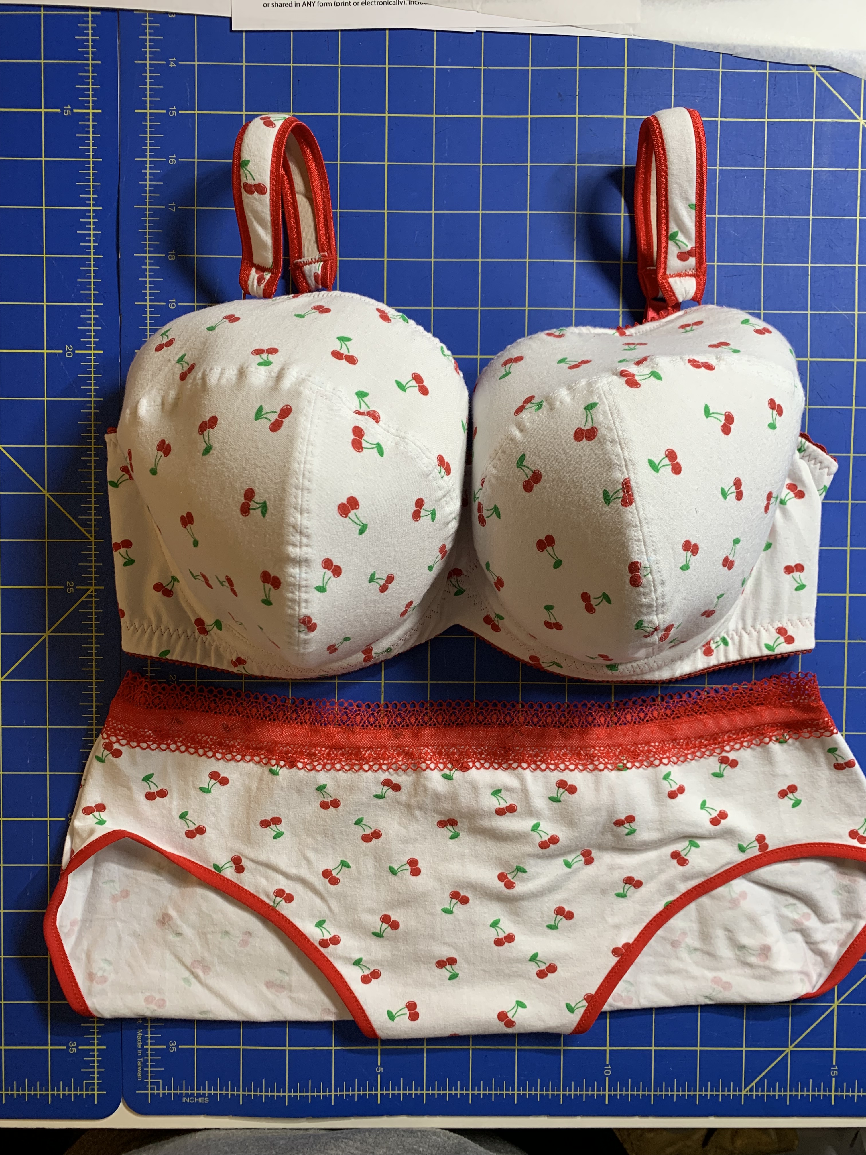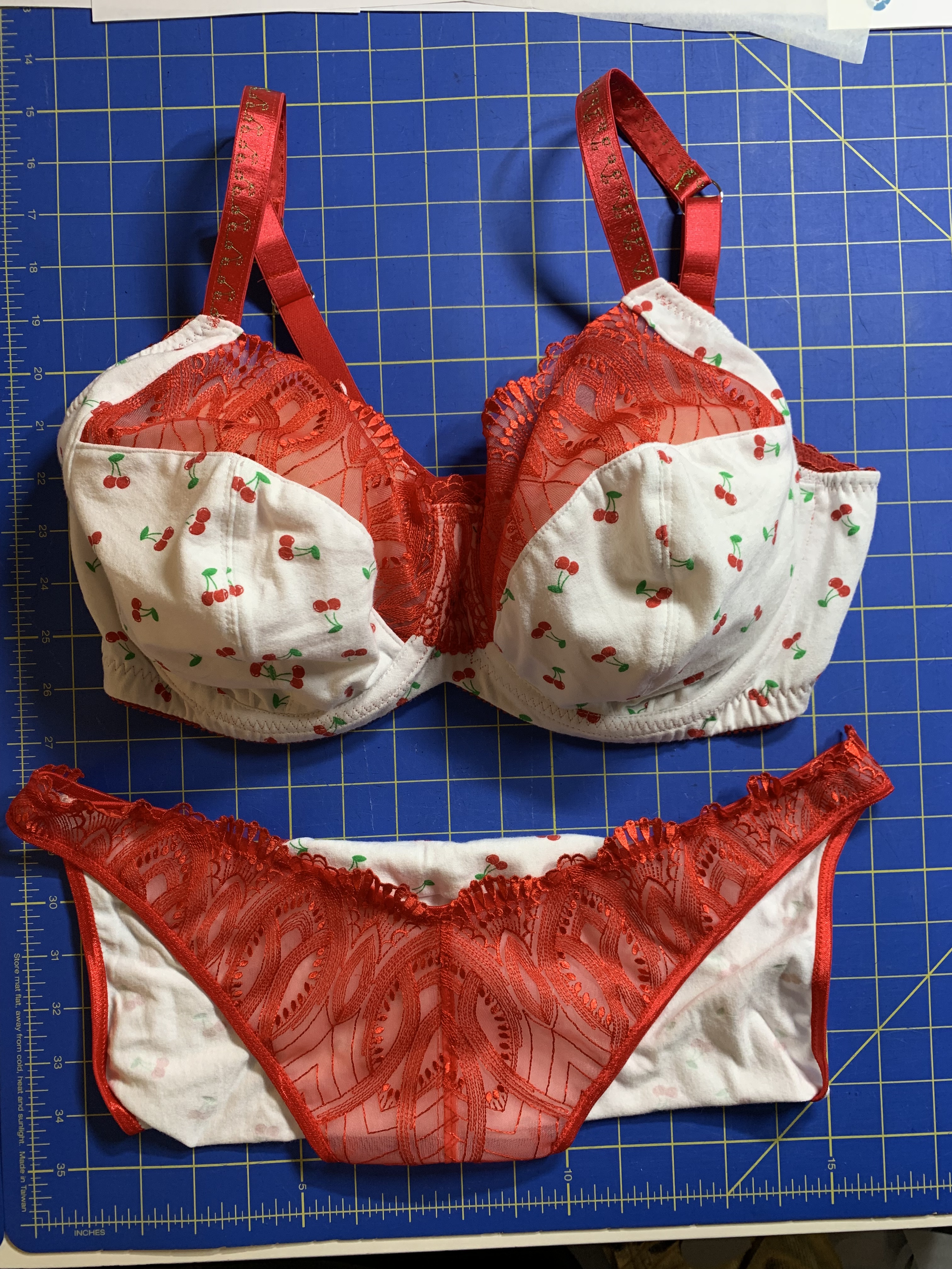 When I had previously planned wardrobe sewing, I never thought it would really extend to making collections of undergarments, but here we are. I became obsessed with this cherry fabric from Metro Textiles, and now I’ve got enough cherry undergarments to last me a lifetime. Or at least until the end of the year…