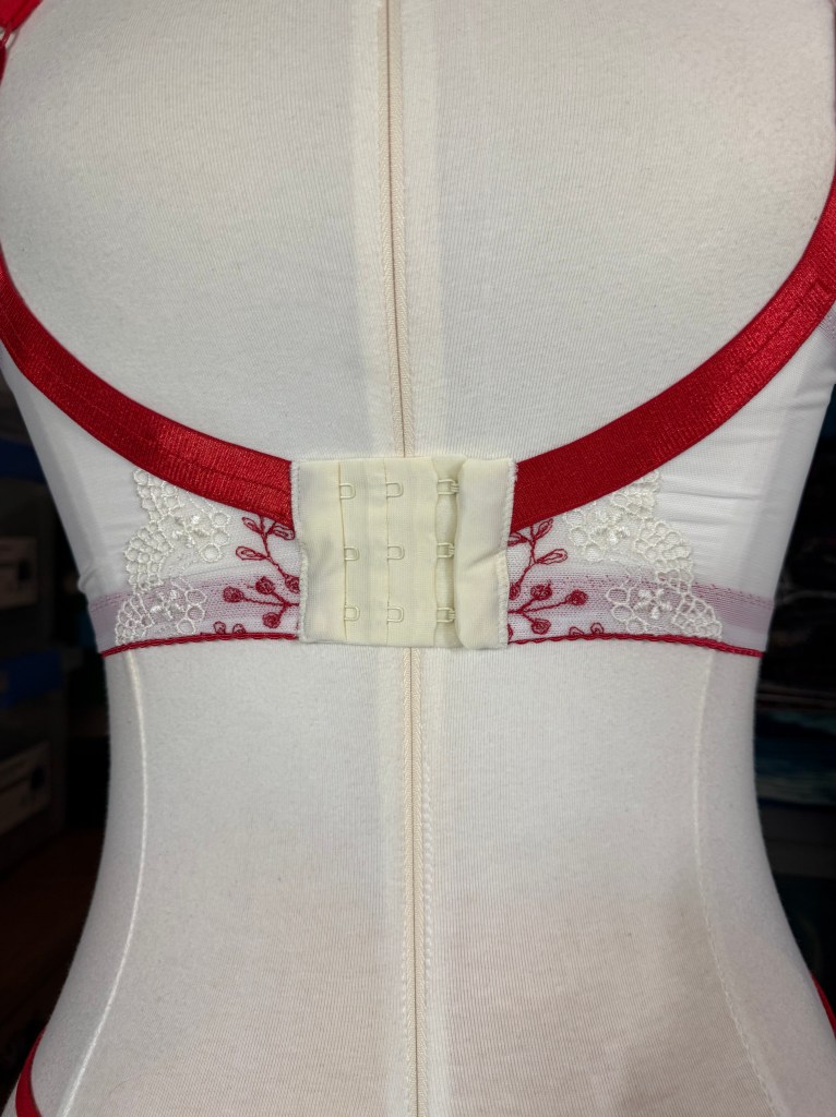 My first post on making the Maya details all the more intense fitting I did to create the omega adjustments I needed to match up the 90H/40H (cm/in) cup with my 44 vertical wire. Since I’d done most of the heavy lifting in terms of fitting, this time I was able to just make a few adjustments to really dial in the fit. I removed 1/4″ from the neckline, moved the strap inwards about 3/8″ on the front, and changed the angle of the DOGS on the lower cups.