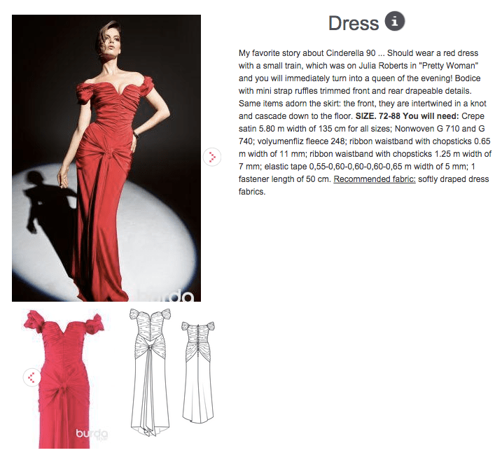 For the evening look I chose Katherine Hepburn’s stunning black evening gown from Adam’s Rib. You can’t see all of the details on the film, but luckily the internet has found higher resolution images and this dress is truly amazing. To re-create the look I chose the Pretty Woman Burda pattern (11-2014-120). I know it’s already a re-make of a gown from a different film, but I think it gives the same general vibe, and could be a good base pattern to adapt if I wanted to make something a bit closer to the inspiration image.
