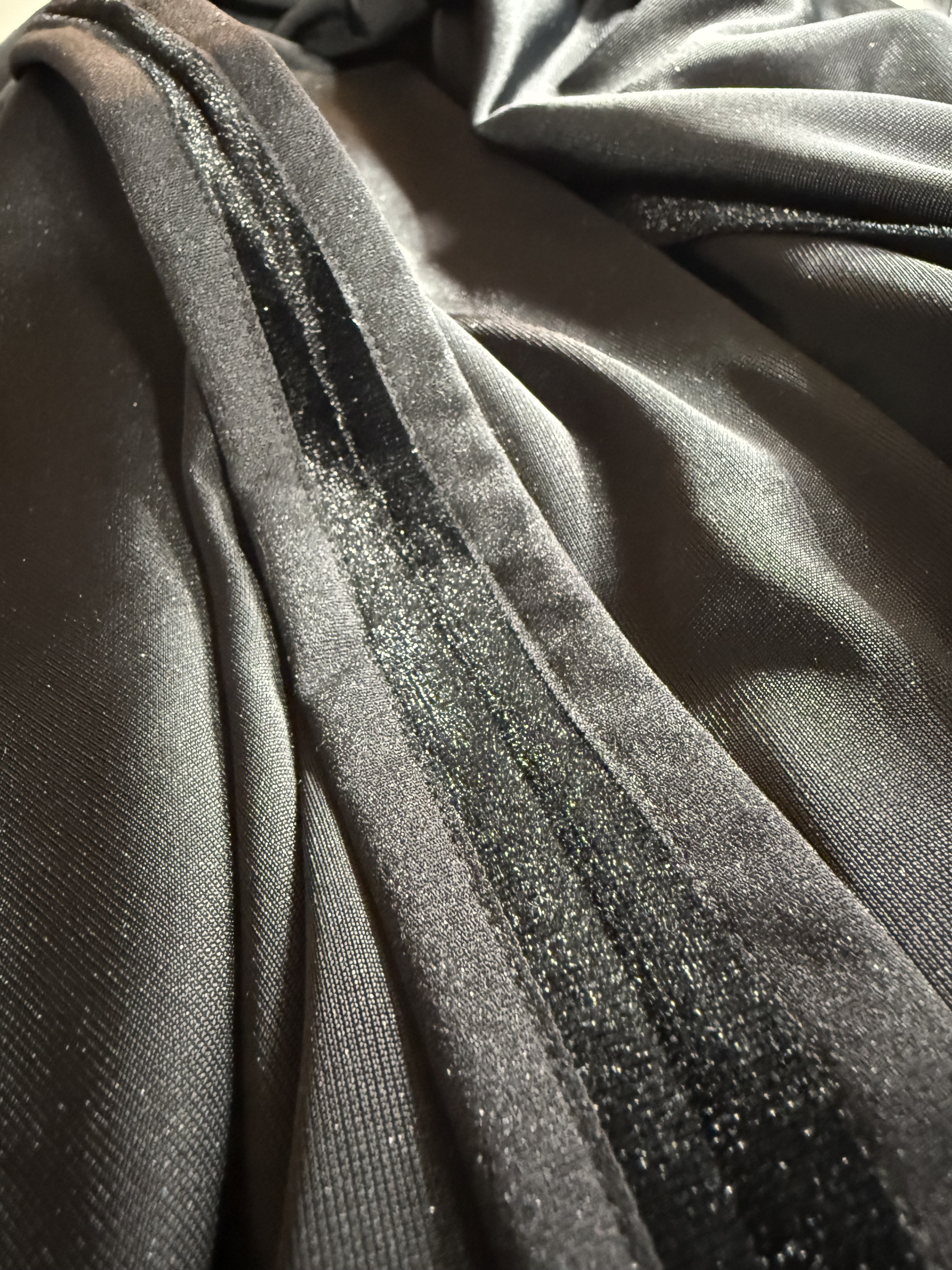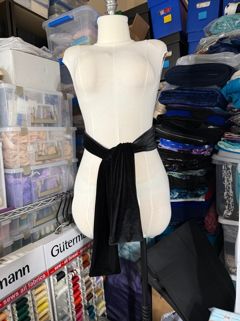 Fabric used: Black stretch velvet from Cali Fabrics. I also used fold over elastic to finish off some of the seam edges to give it a more polished look on the inside.