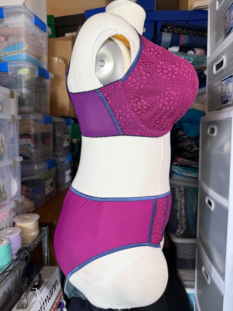 I was pleasantly surprised to find that actually even with the wire change, last year’s pattern still worked pretty well for me, although I did need to add back a bit of length to the neckline edge of the upper cup. It’s great having several options for neutral bras that fit, and I’m definitely going to pull out the Josey pattern again because it’s such a great option to use with fun lace designs. I’m also planning to do another more in depth post on this project after I make some bottoms because I tried some new techniques and new sewing machine feet during the construction, but