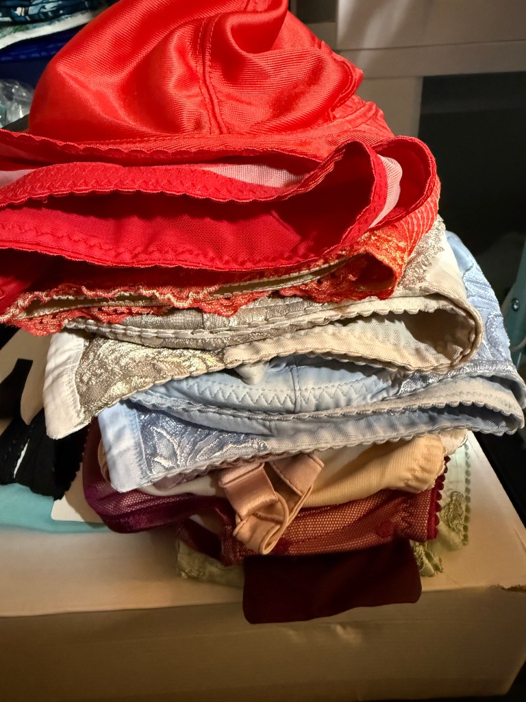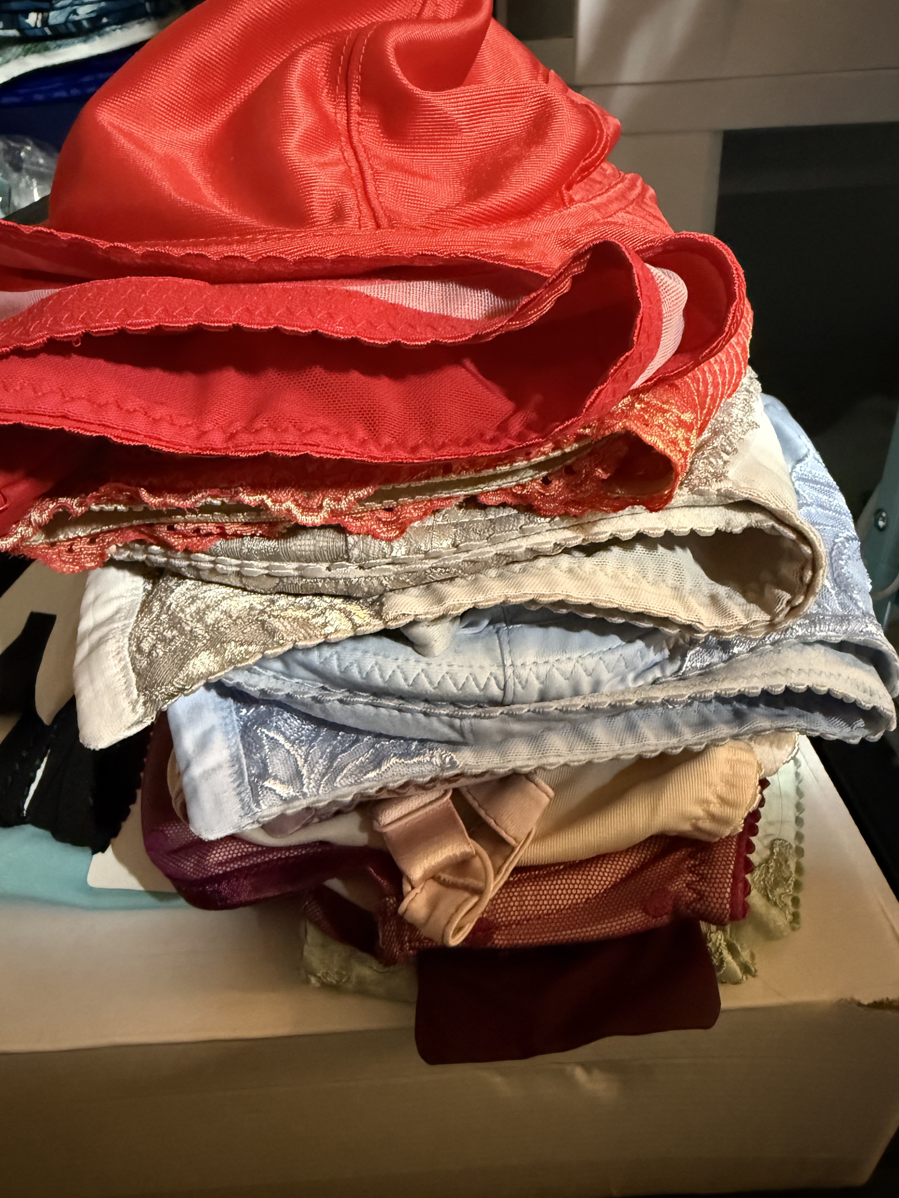 I also found time to do what might be classified as “mending,” though it’s not exactly that. During the Fit Clinic process I decided I was still in the wrong wire size, and after some extensive testing and angsting over wire sizes and shapes, I am now using a size 50. And, truly – I think this is finally it. I’ve been happy with wire sizing before but there’s always been something niggling at me saying it’s not entirely right, or the fact that the fit feels off becomes more apparent the longer the bra is worn during the day. This time, there’s none of that. It feels right, all day long, and it’s really nice. With this revelation, I went back and compared the 50 Vertical and the new Porcelynne 50 Long Omega wires to my current bras. Some have really short wire lines and there isn’t an option to switch out the wire for anything larger because it won’t fit, but for quite a few of the bras I made last year, I could swap out the wires into one of the styles in a size 50. So I decided to add a bunch of “mending” projects for wire swaps to my list of sewing things this month. This has both been great, as some of the bras I’d not been wearing feel much more comfortable now with the 50 wire, and been awful because ripping out bar tacks is a giant PITA – so much so that my seam ripper literally snapped! Happily it’s the kind of seam ripper where you can replace the insert and I had backups on hand, but still. Anyway, long story short, some patterns like the Josey, the Ruby, the Lamina, and the Labellum actually fit better with the wire swap, and for other patterns it is more apparent that the cups are too small and I need to revisit the pattern before making more versions. Some of these bras are several years old at this point, so that doesn’t surprise me too much, because I think my cup size has also increased a bit over that time, but I am happy that I feel like I’ve found a wire size that really feels like it’s going to work and I can now select wire styles to work with the different bra patterns and styles, rather than trying to figure out why the wires feel slightly off all the time and sort of mashing things together to make them seem alright.