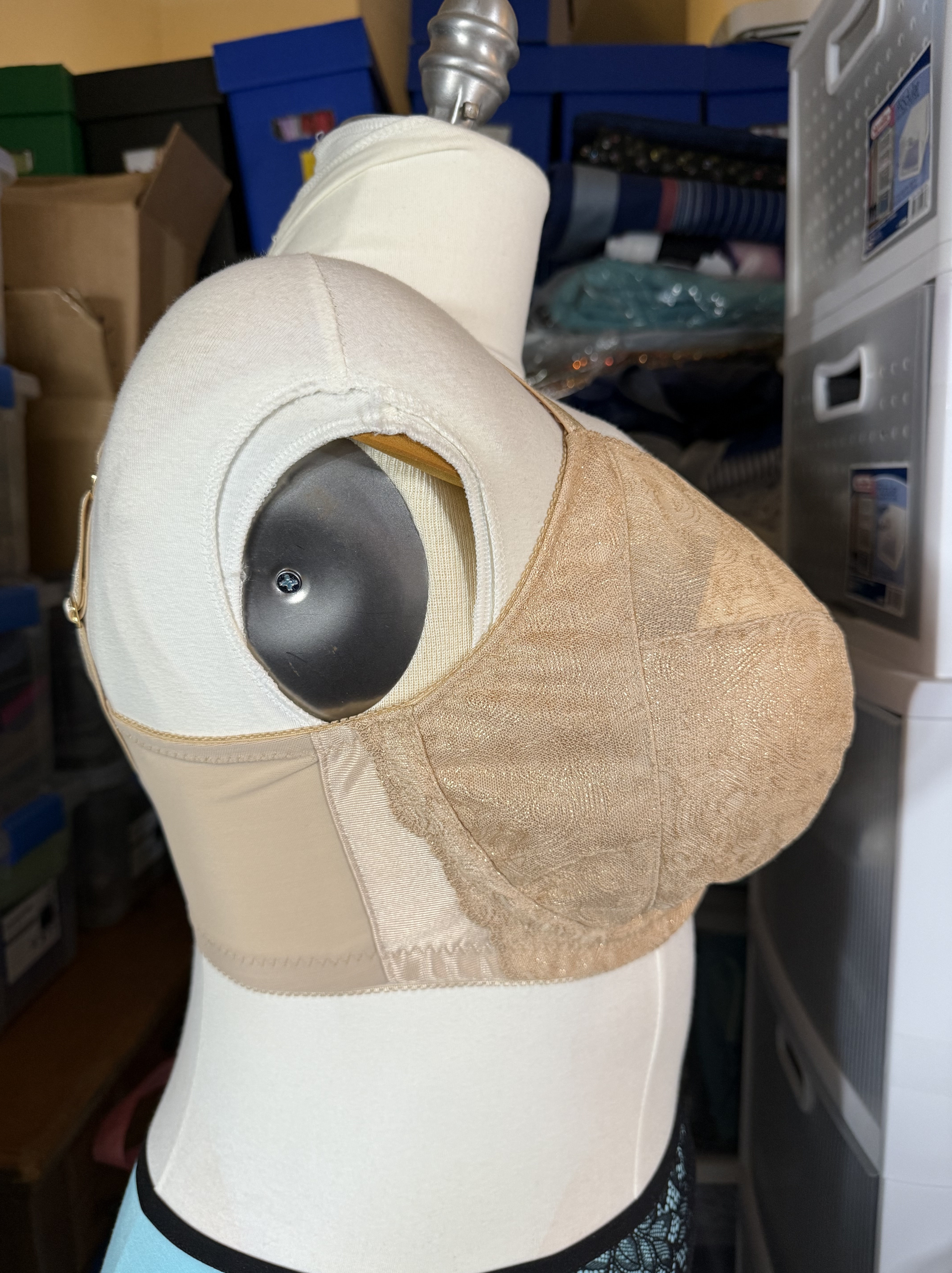 After the Bra Fit Studio class I realized that with the new wire size and the DL02 pattern I was really on to something in terms of having some very comfortable bras, and I decided I really wanted to try and make some neutral versions to wear under light colored shirts during my travels. So the first week of April I busted out two more DL02s, this time in foam: